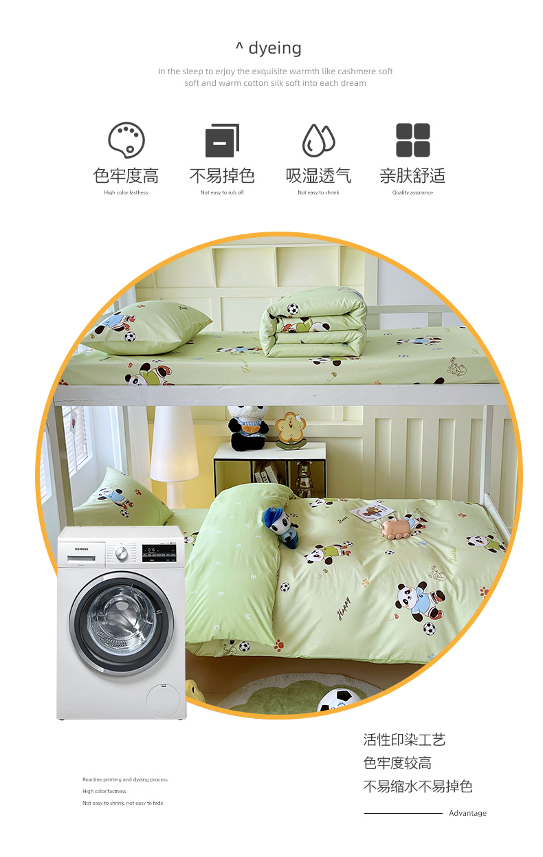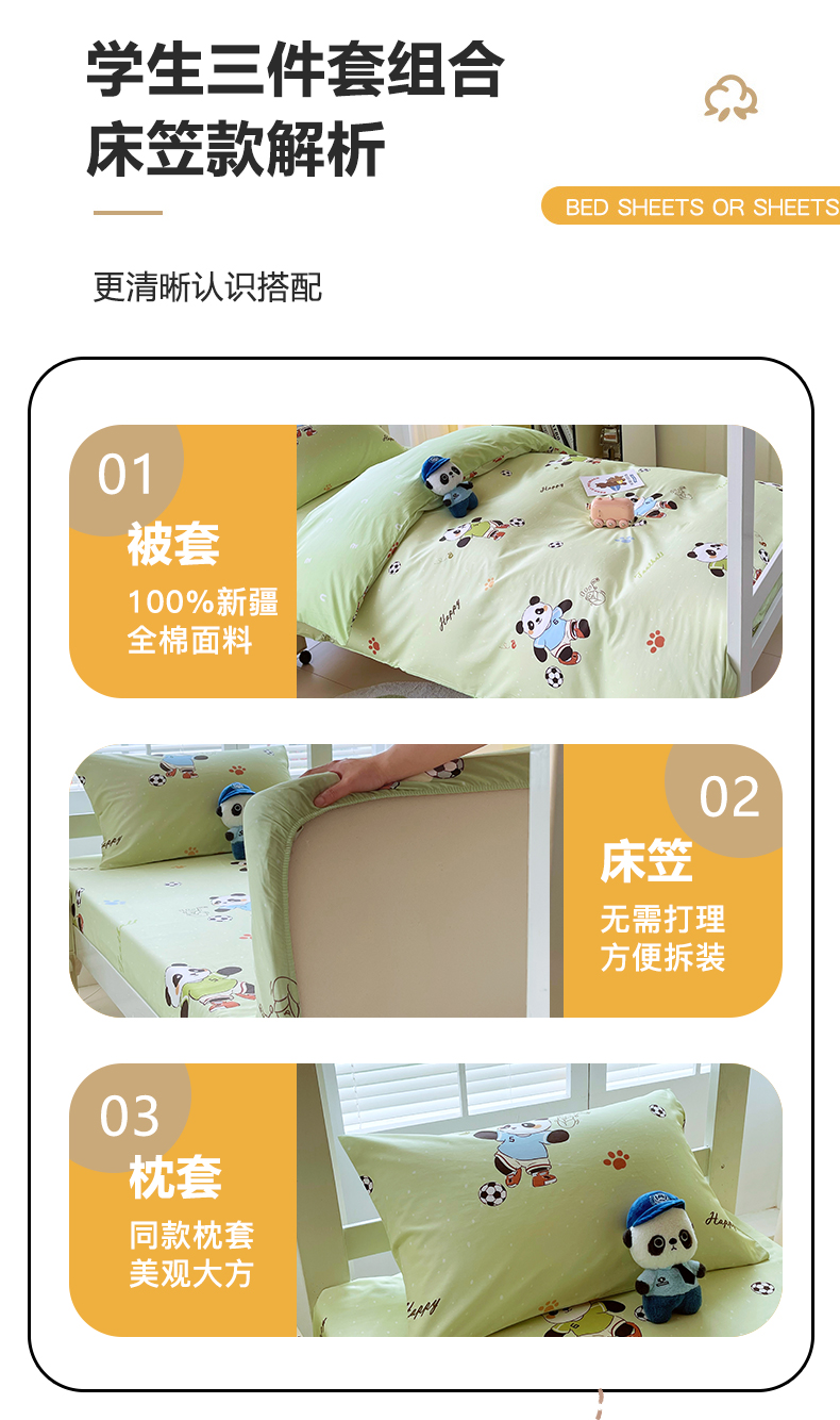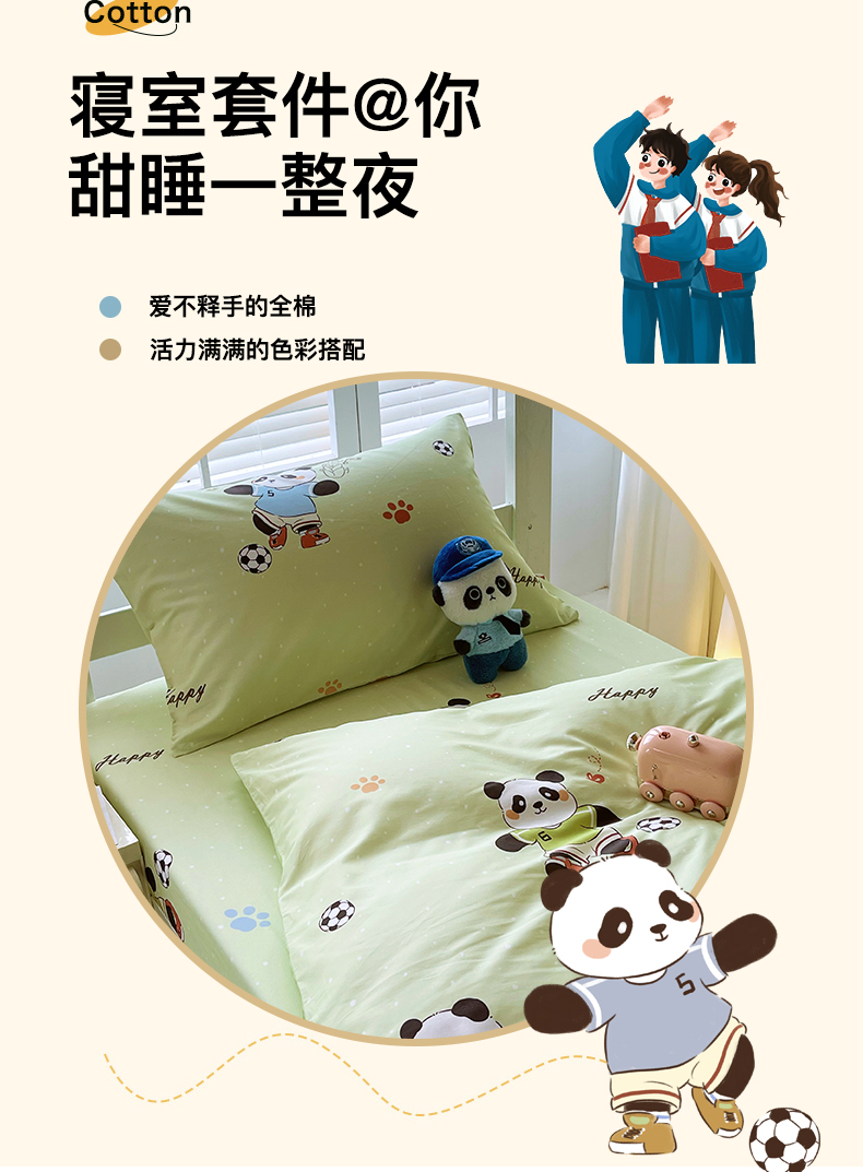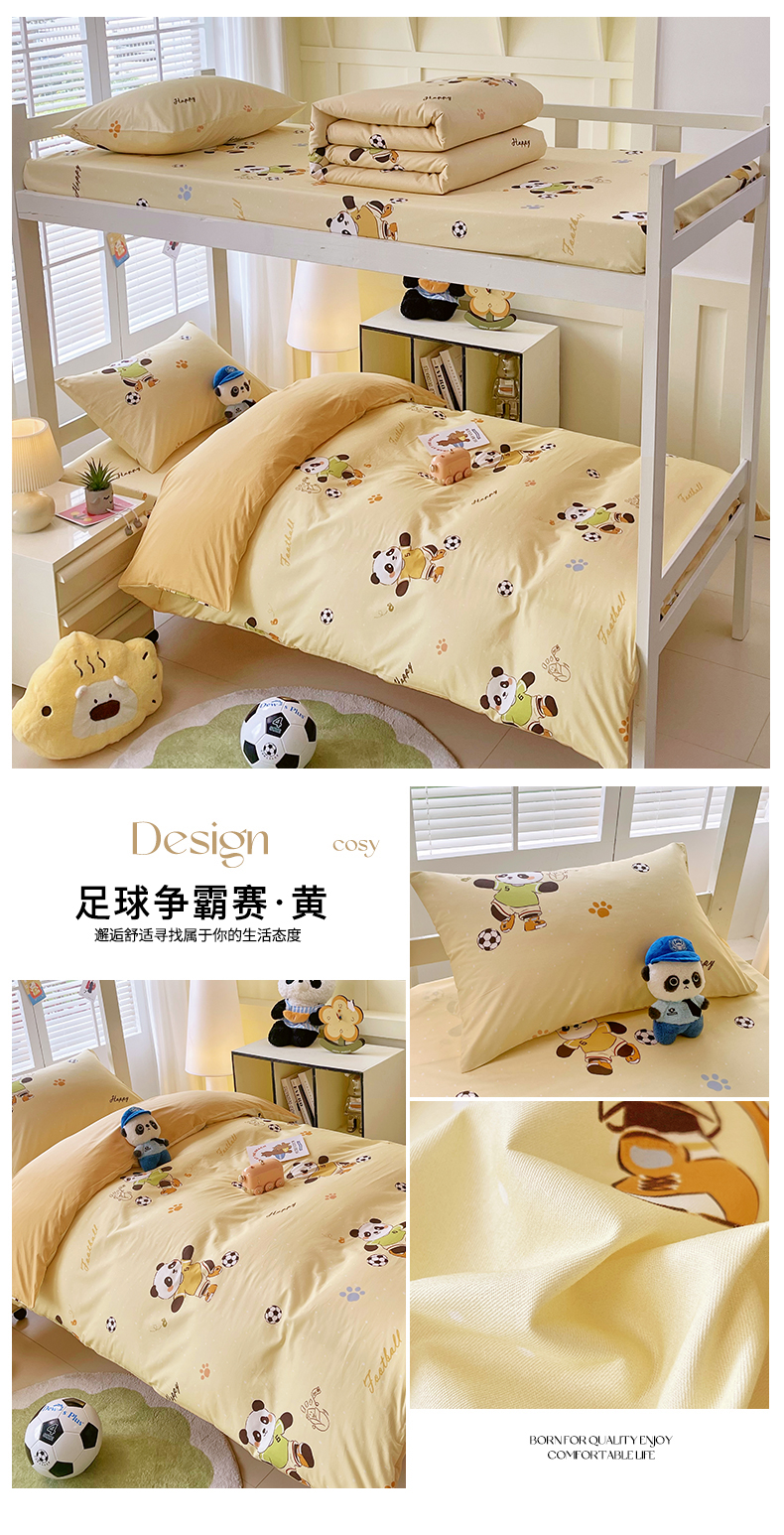 当前位置: 91家纺网 > 商品网购 > 床品套件 > 三件套 > 金鑫汇家纺 2025新款A类全棉纯棉印花学生床宿舍上下铺三件套 足球争霸赛·绿
