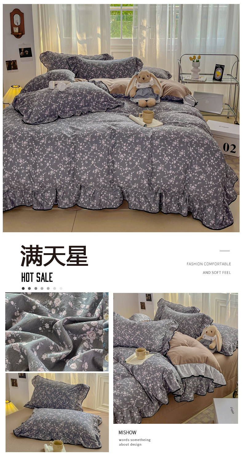 (总)斯卡诺家纺 2026新款春夏古法水洗仿棉云感纱四件套小布袋五件套,灰樱桃,哆咪熊,觅时光,满园春色,花絮,狗狗家族,点点气球,爱心樱桃,慕兮,俏皮狗,森屿,盛夏花开,拾花季,甜心草莓,甜心喵,童趣,兔小姐,线条狗狗,小苍兰,小熊头,小夜曲-粉,小夜曲-紫,熊布布,熊熊奶冻,红粉佳人,花千朵,凯蒂猫,马上暴富,漫野,喵星人,南枝,清雅,樱桃