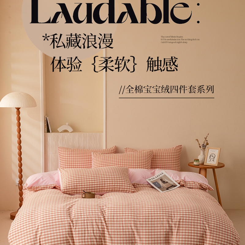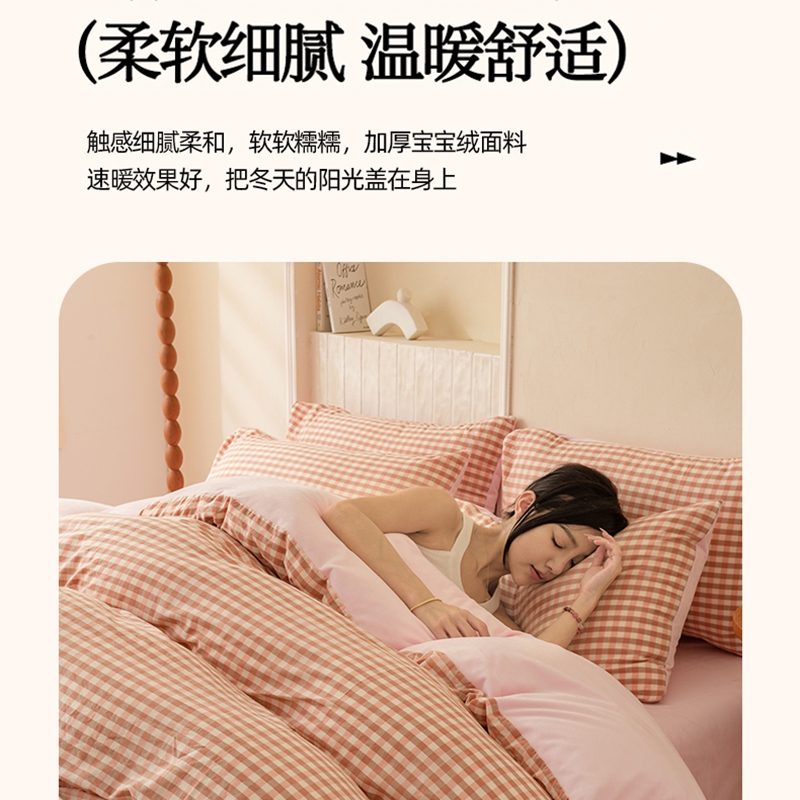当前位置: 91家纺网 > 商品网购 > 床品套件 > 四件套 > 牛奶绒四件套 > 雯雨家纺 全棉纯棉加牛奶绒宝宝绒一面棉一面绒四件套 棉绒-粉小格