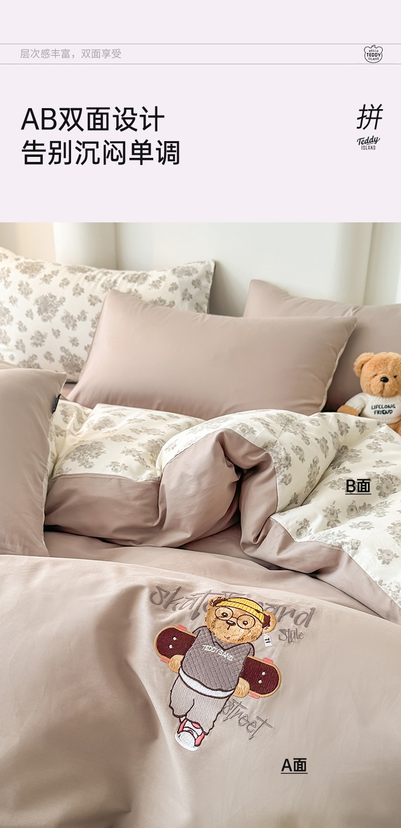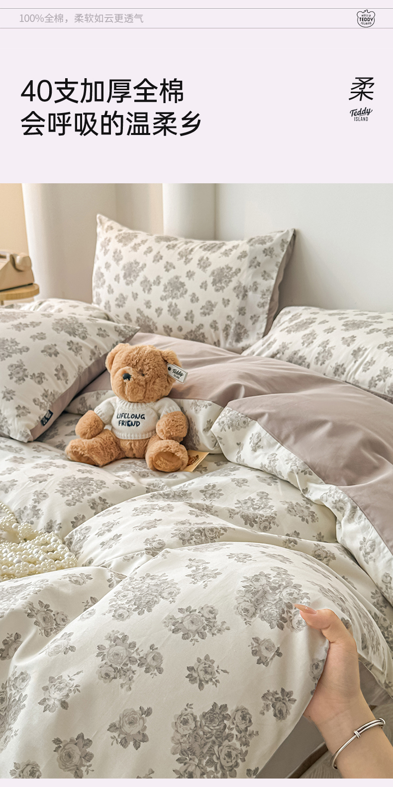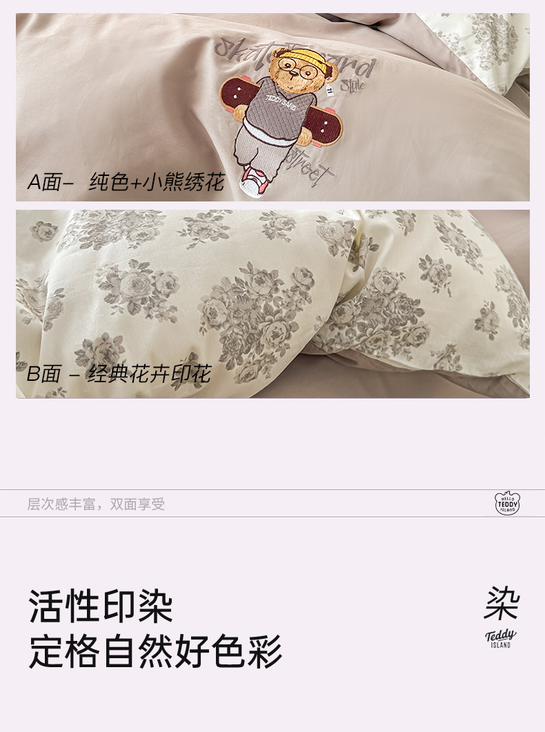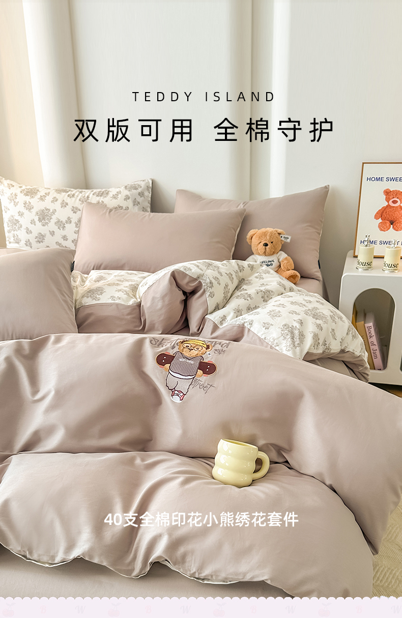 (总)泰迪爱兰Teddy ISLAND 2025新款40支全棉印花刺绣四件套,烟雨花间,印记时光,童年诗篇,挽夏-绿,迪莉娅,守护甜心,素然-米