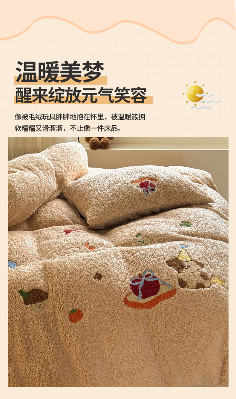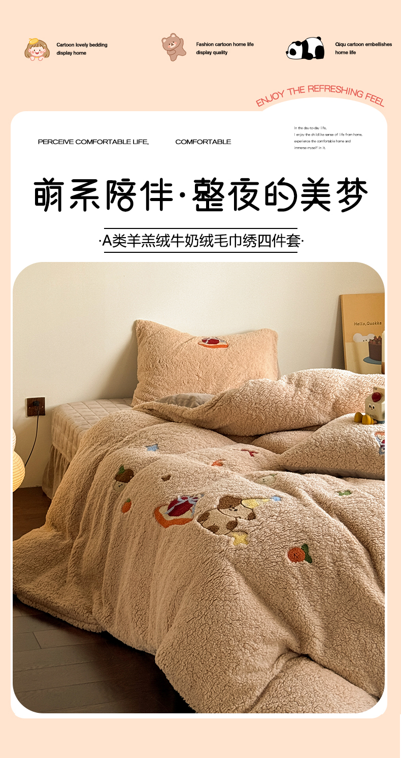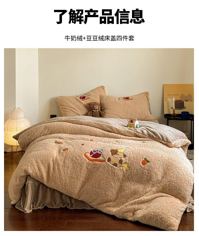 当前位置: 91家纺网 > 商品网购 > 床品套件 > 四件套 > 牛奶绒四件套 > TT.one 塔塔家居 2025新款羊羔绒牛奶绒暖绵绵毛巾绣床单床裙床盖款四件套 奶咖美味堡