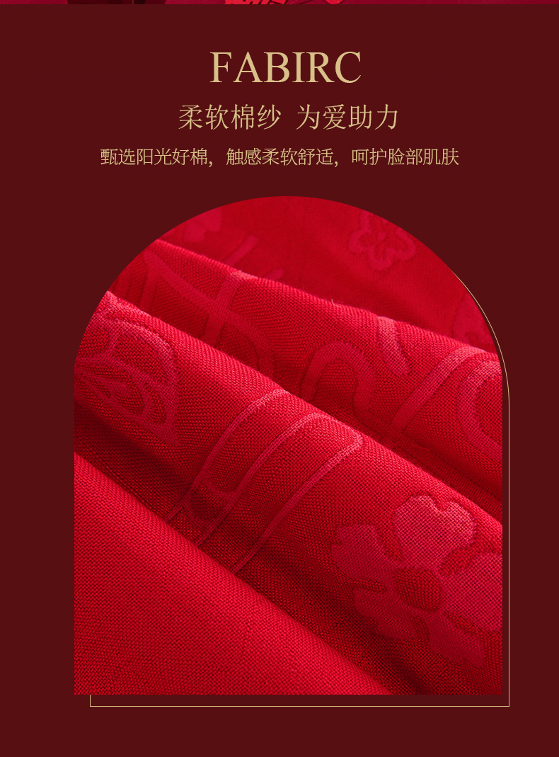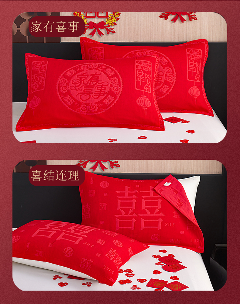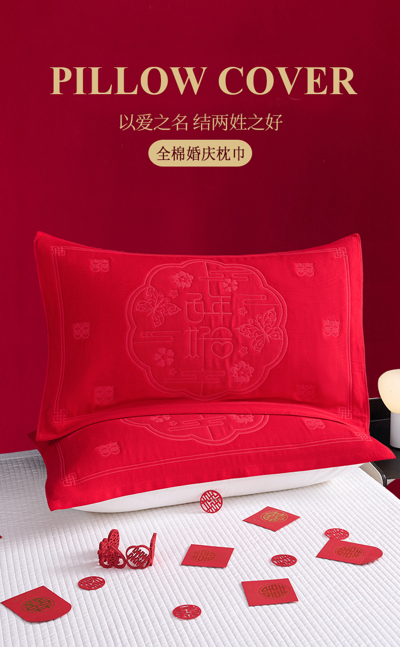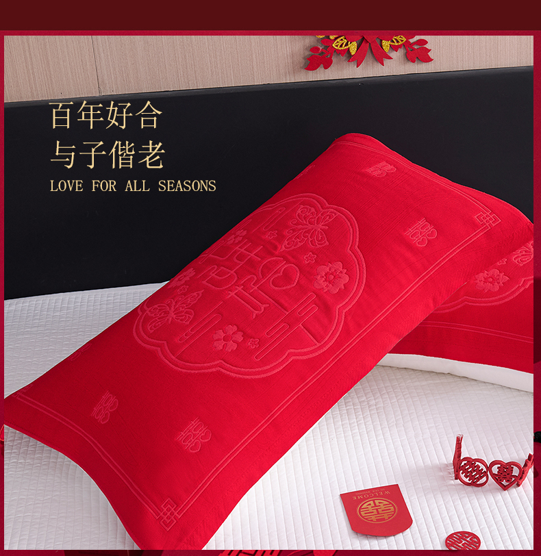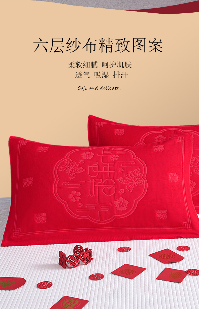 商品名称:棠薇家纺 2025新款全棉大红婚庆枕巾红色结婚全棉纱布枕巾盖巾垫巾 百年好合