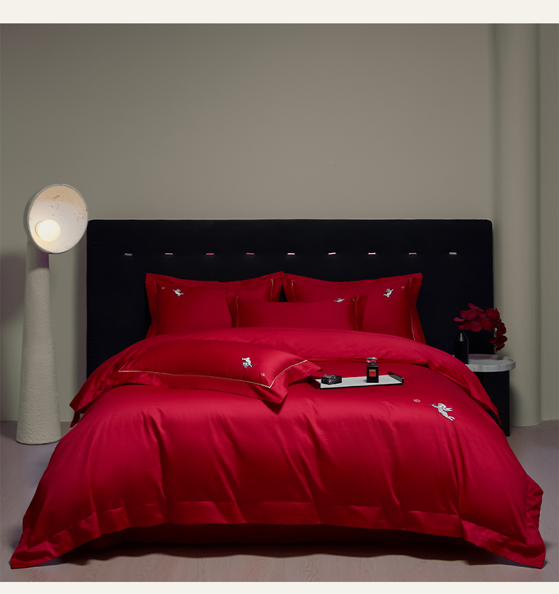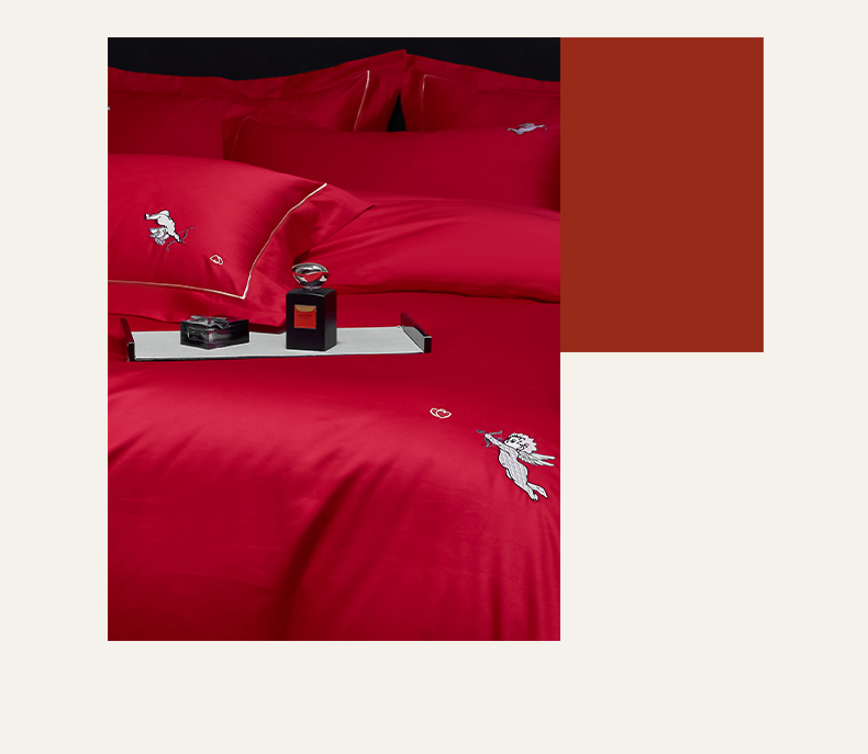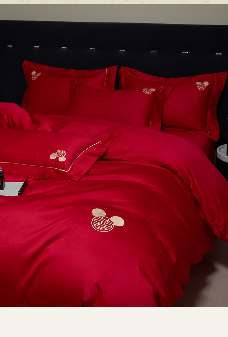 (总)欧乐蒂 2025新款婚庆款牛奶绒刺绣系列四件套-爱相随,爱相随-喜红,爱相随-金