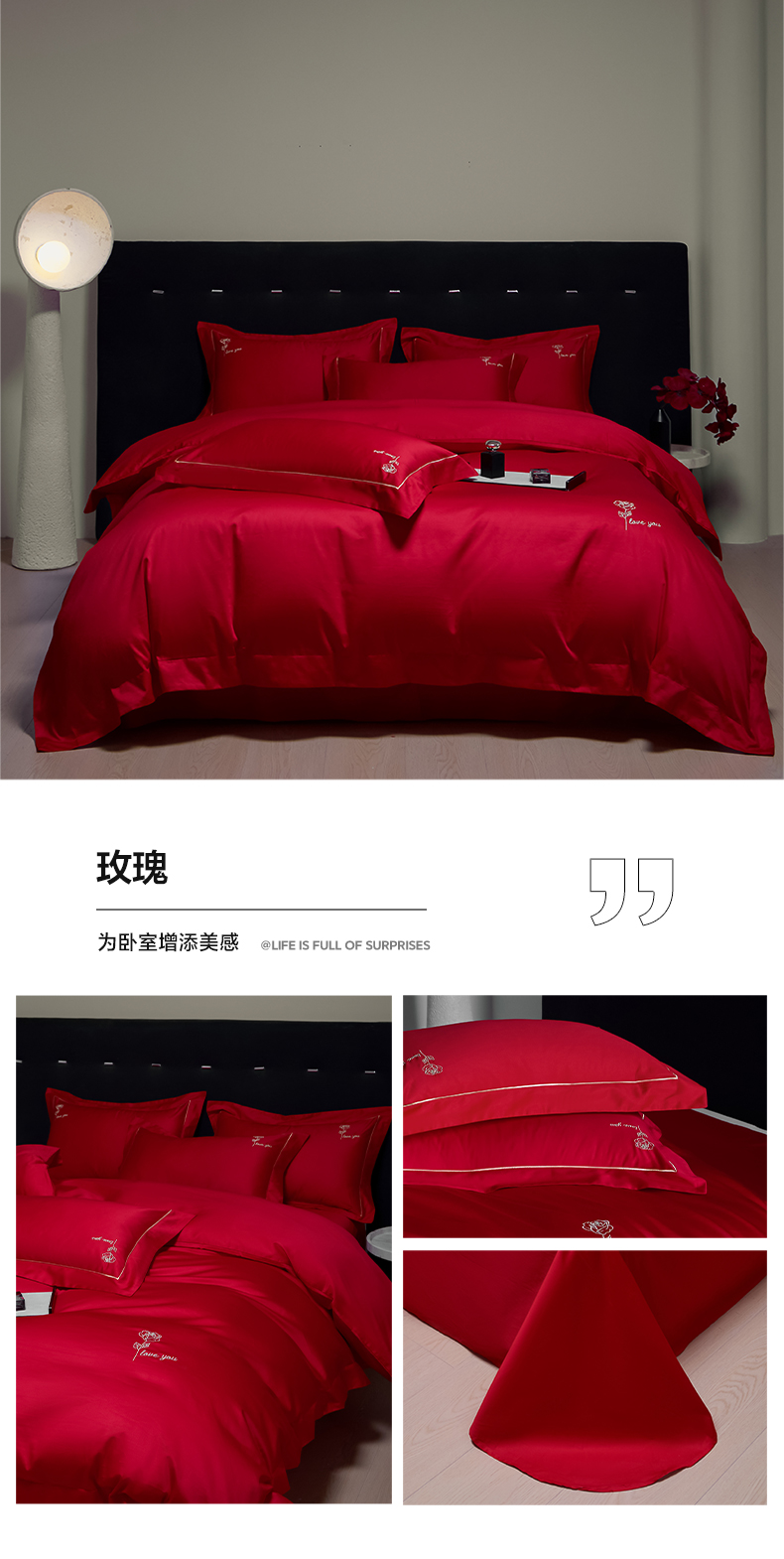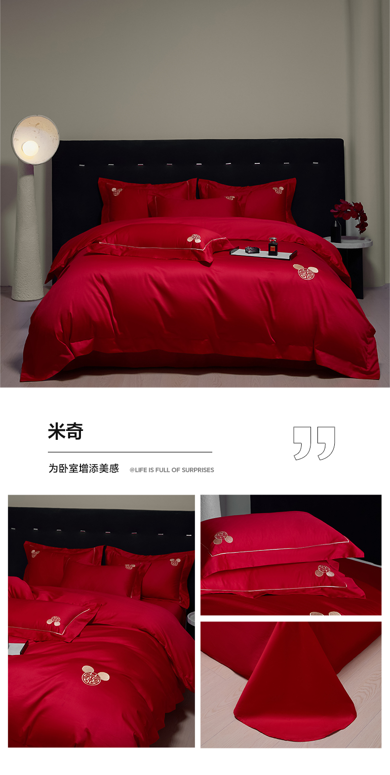 (总)欧乐蒂 2025新款全棉刺绣婚庆四件套,佳偶天成,龙凤和美,龙姿凤彩,玫瑰恋人,倾城之恋,双囍临门,甜蜜爱情,囍结良缘