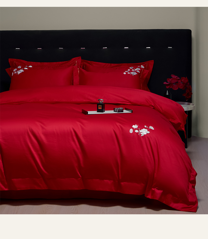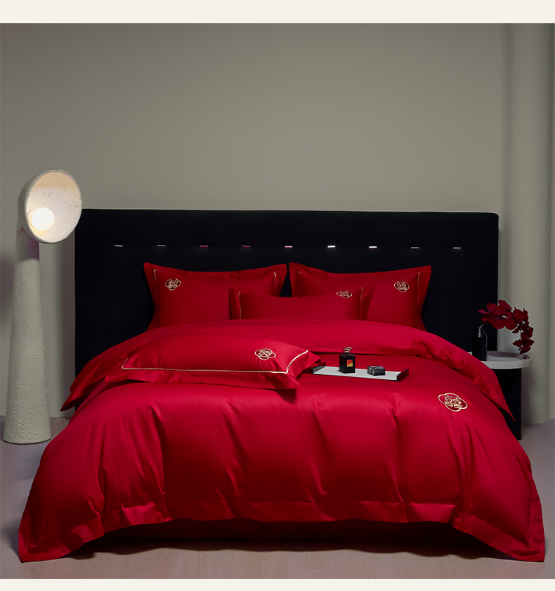 (总)欧乐蒂 2025新款亲肤棉刺绣花边婚庆四件套-浪漫花季,浪漫花季-红,浪漫花季-金