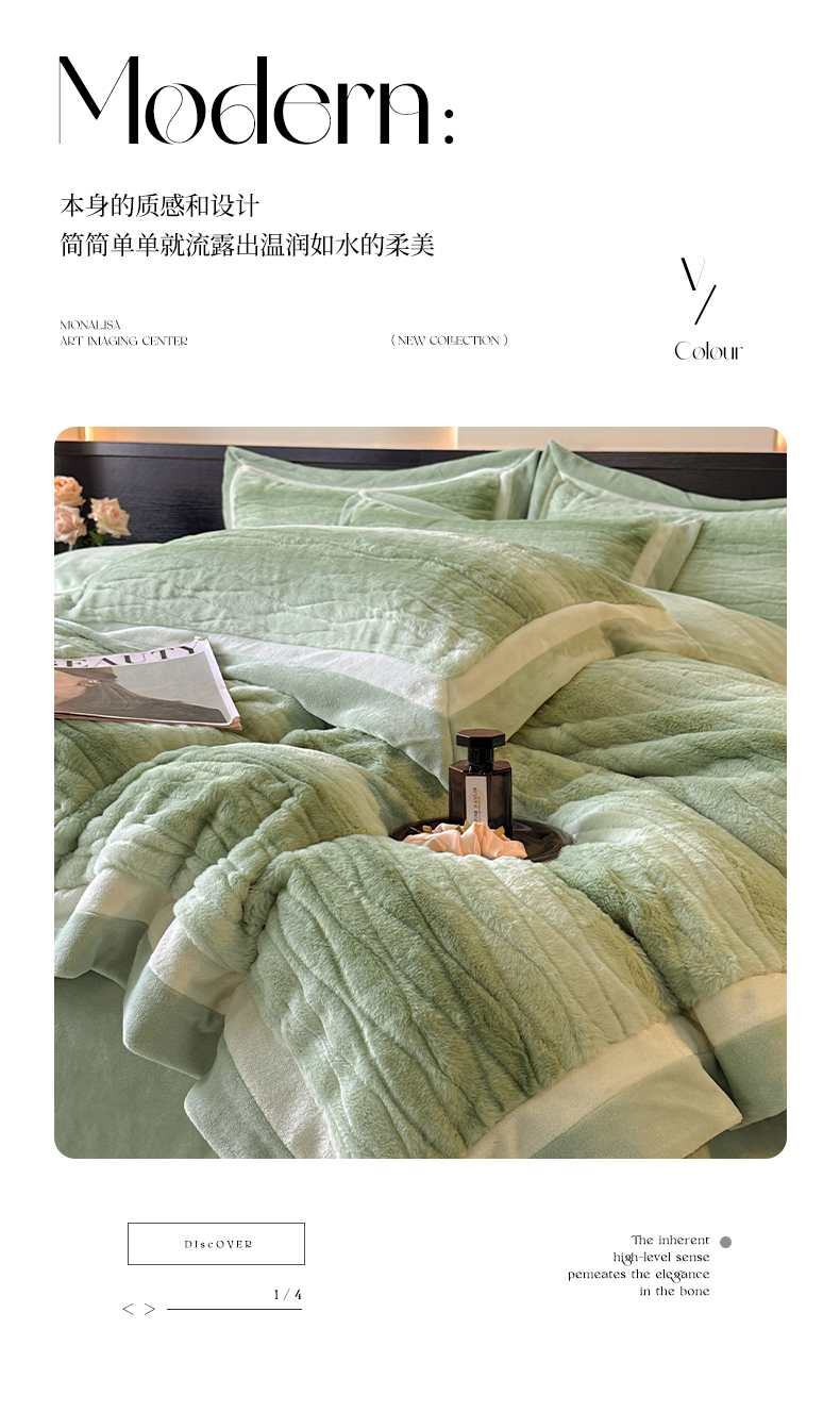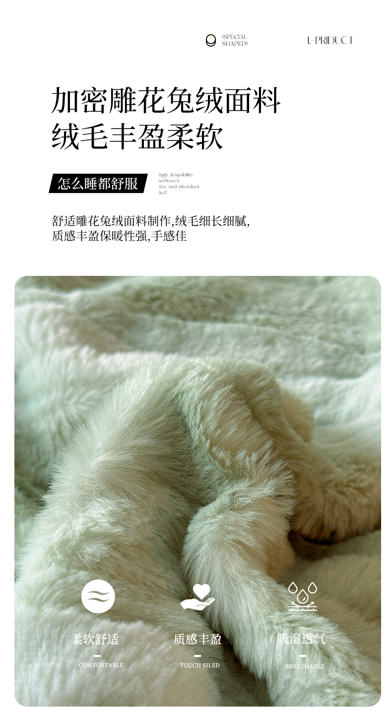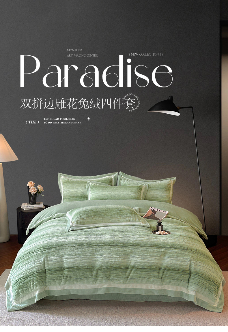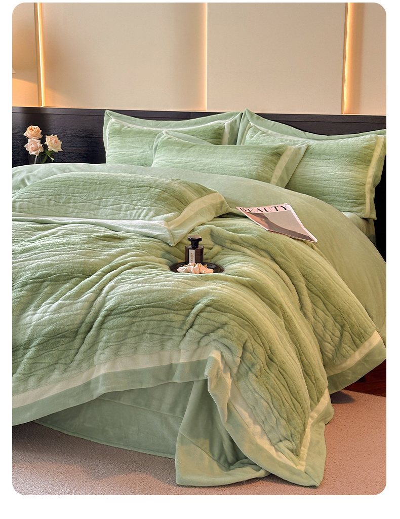 绘萱家居 2025新款亲肤舒适双拼边雕花兔毛绒四件套-爱丁堡 爱丁堡-绿