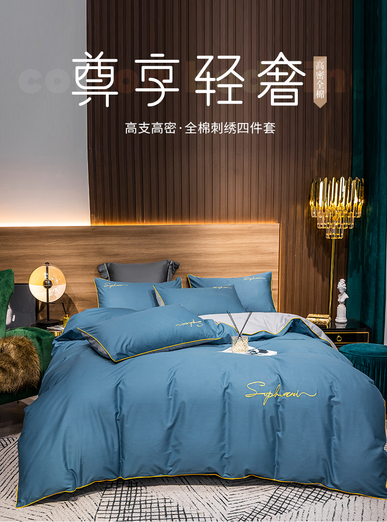 当前位置: 91家纺网 > 商品网购 > 床品套件 > 四件套 > 全棉普通四件套 > 小叮当家纺仓储工厂店 2025新款(热买家秀不断货)40s贡缎长绒棉纯棉字母款全棉四件套轻奢床上用品 宝兰配浅灰