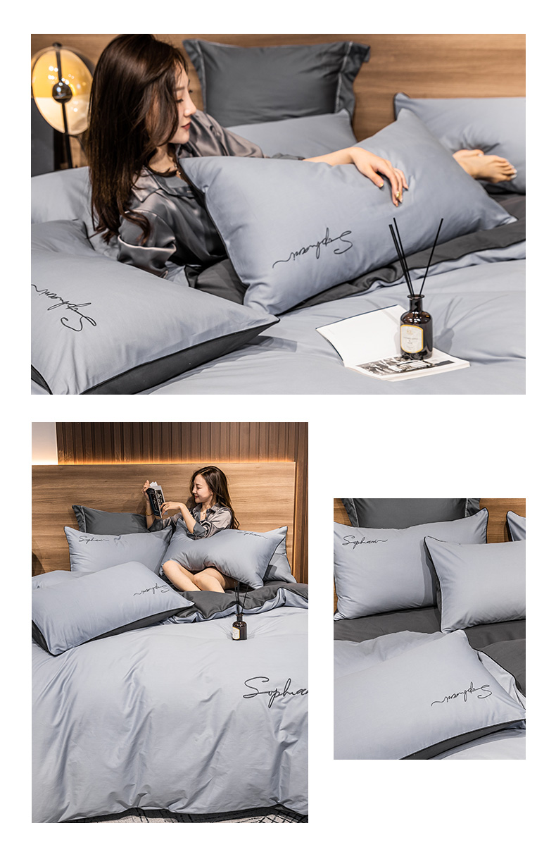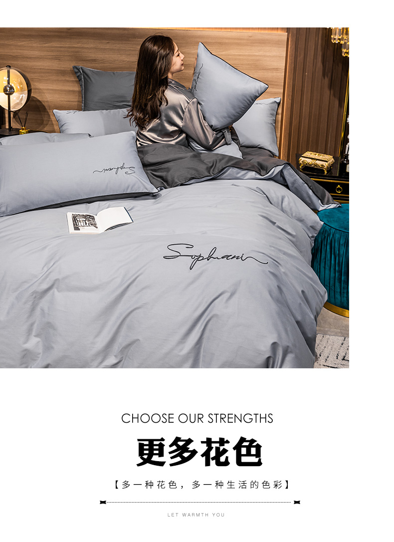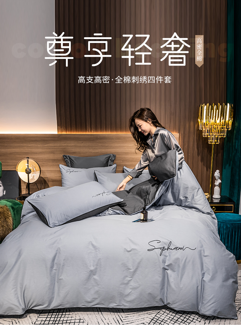 当前位置: 91家纺网 > 商品网购 > 床品套件 > 四件套 > 全棉普通四件套 > 小叮当家纺仓储工厂店 2025新款(热买家秀不断货)40s贡缎长绒棉纯棉字母款全棉四件套轻奢床上用品 银高级灰