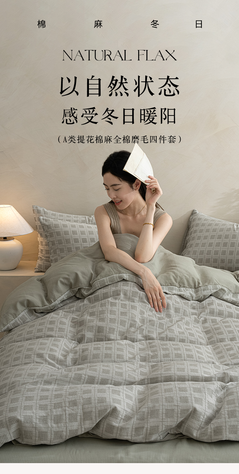 当前位置: 91家纺网 > 商品网购 > 床品套件 > 四件套 > 全棉普通四件套 > 小叮当家纺仓储工厂店 2025新款秋冬(热买家秀不断货)亲肤舒适棉麻提花全棉纯棉磨毛四件套禾屿禾屿系列 禾屿·绿