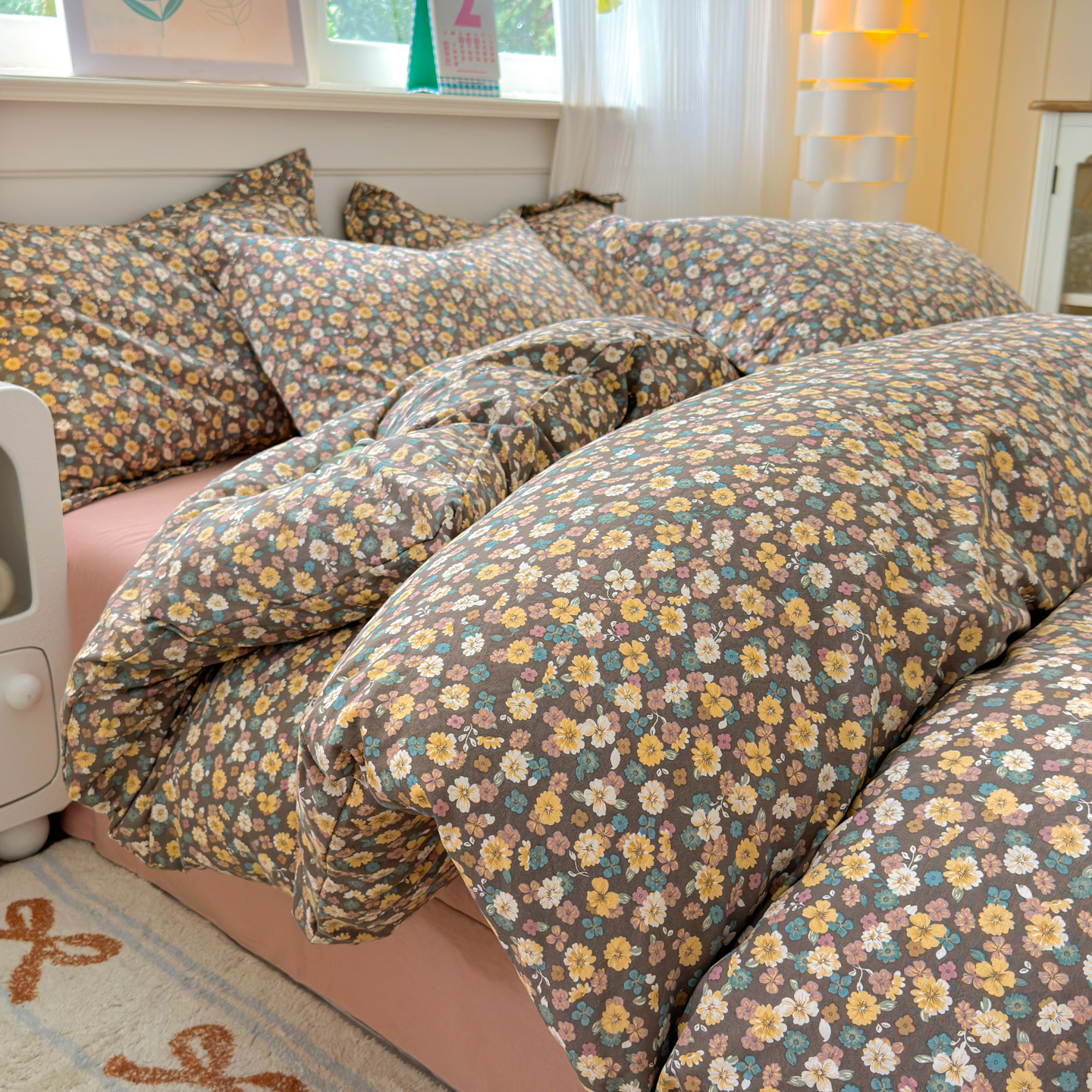 德比尔斯 2025新款爆款韩国小布袋古法水洗棉云感棉四件套 瑾夕