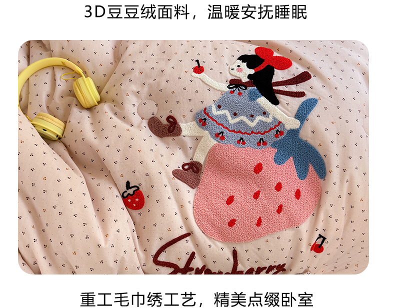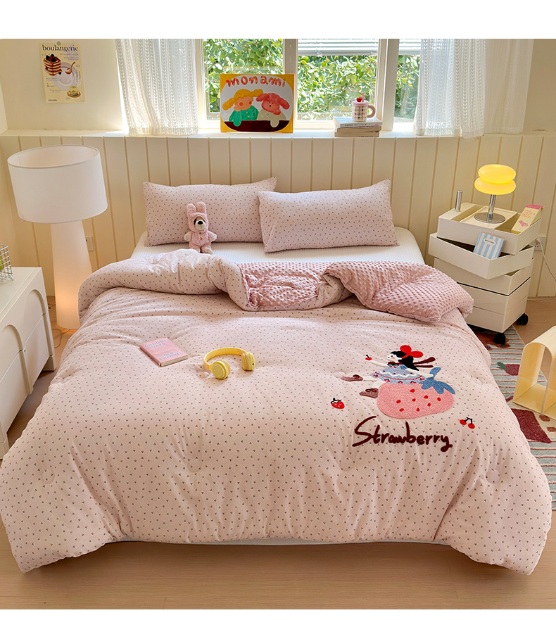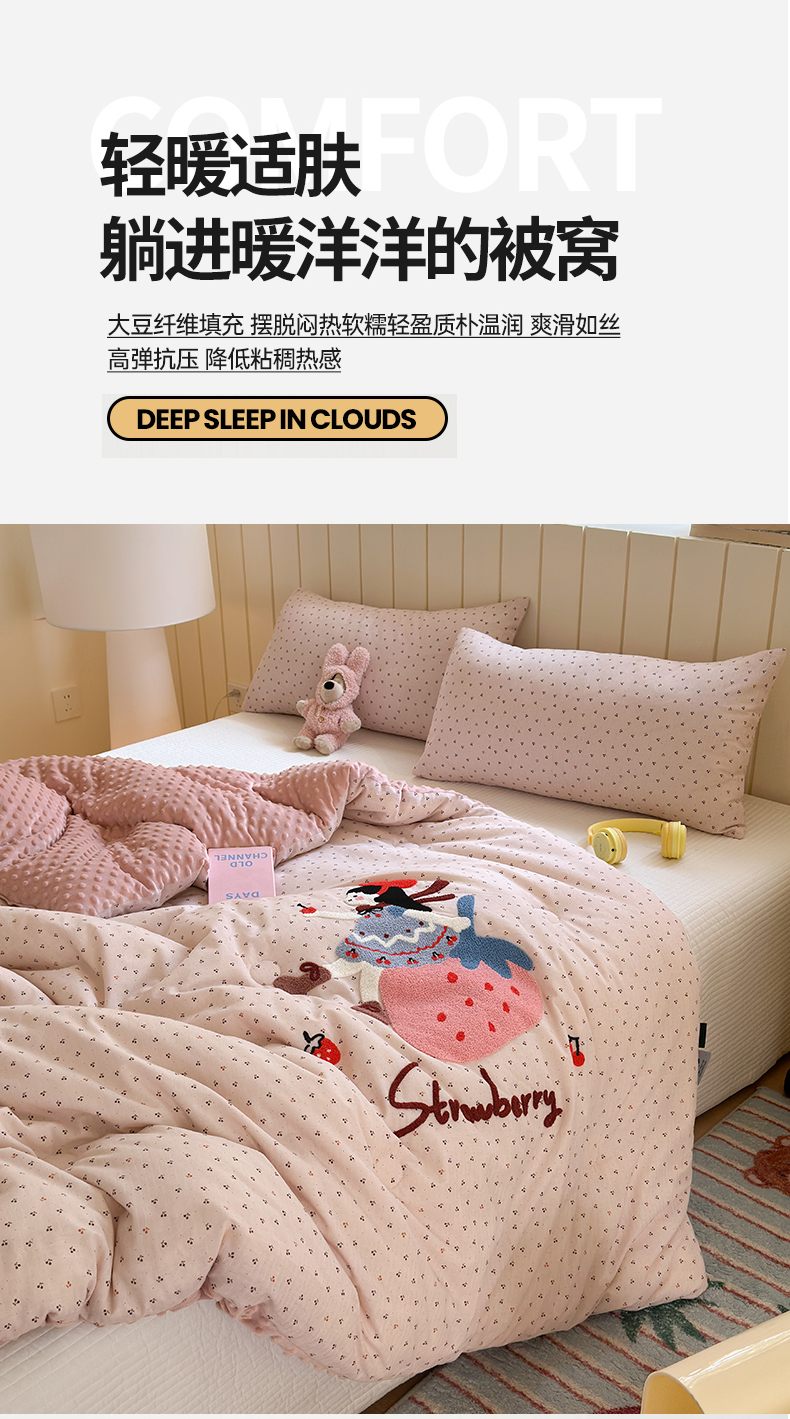 商品名称:寐居家纺 2025新款全棉水洗棉豆豆绒被芯被子 草莓女孩