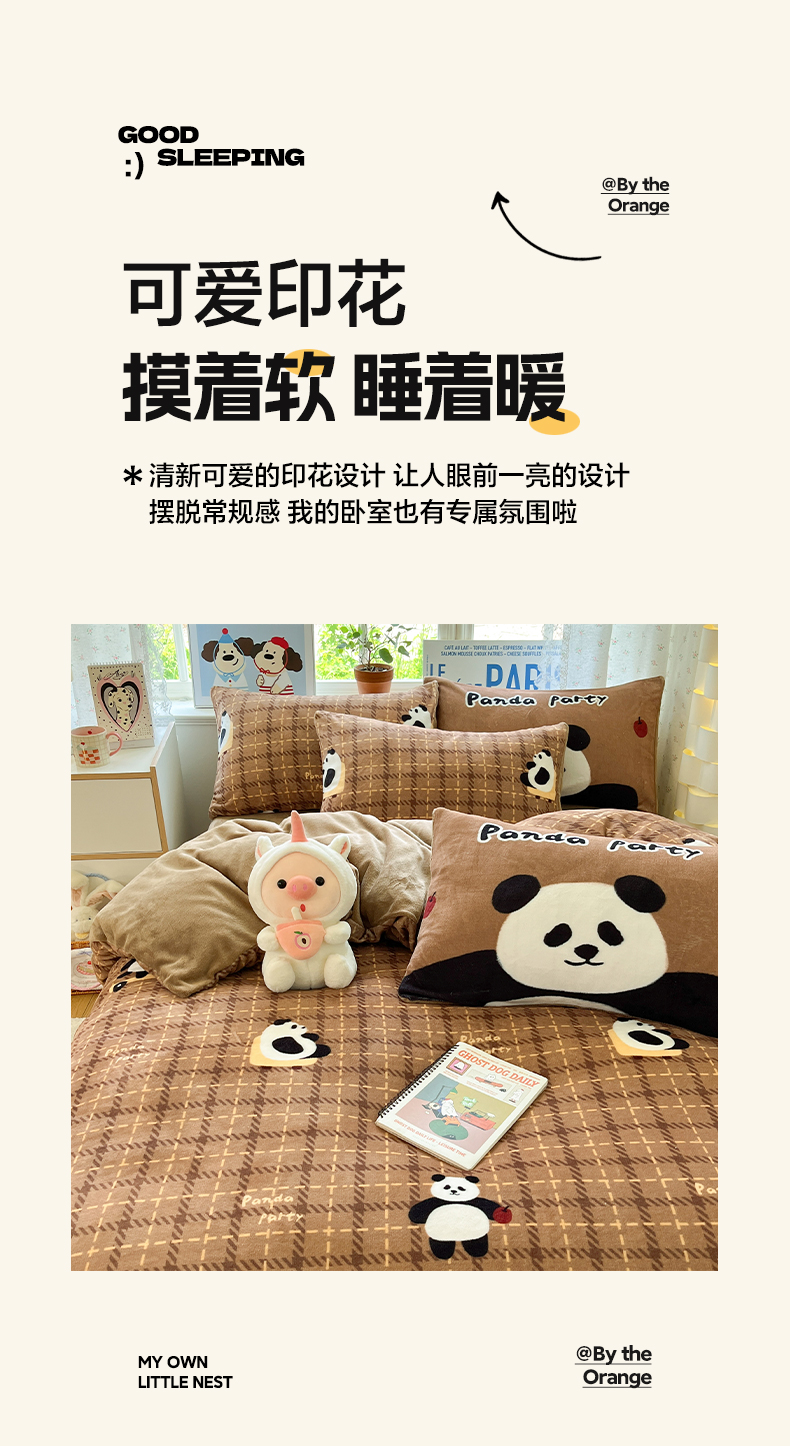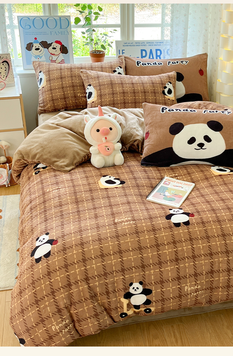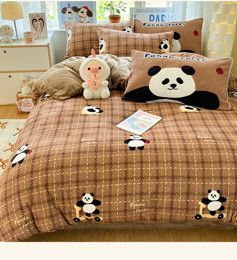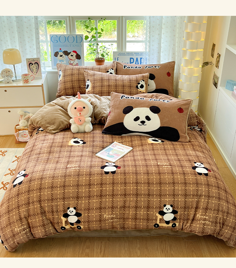 如一 2025新款高克重卡通印花牛奶绒四件套第二批 小熊猫