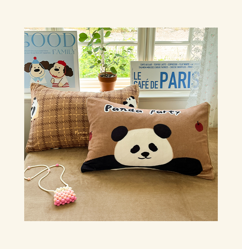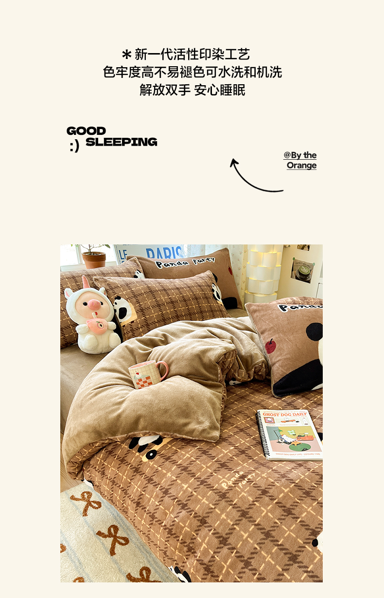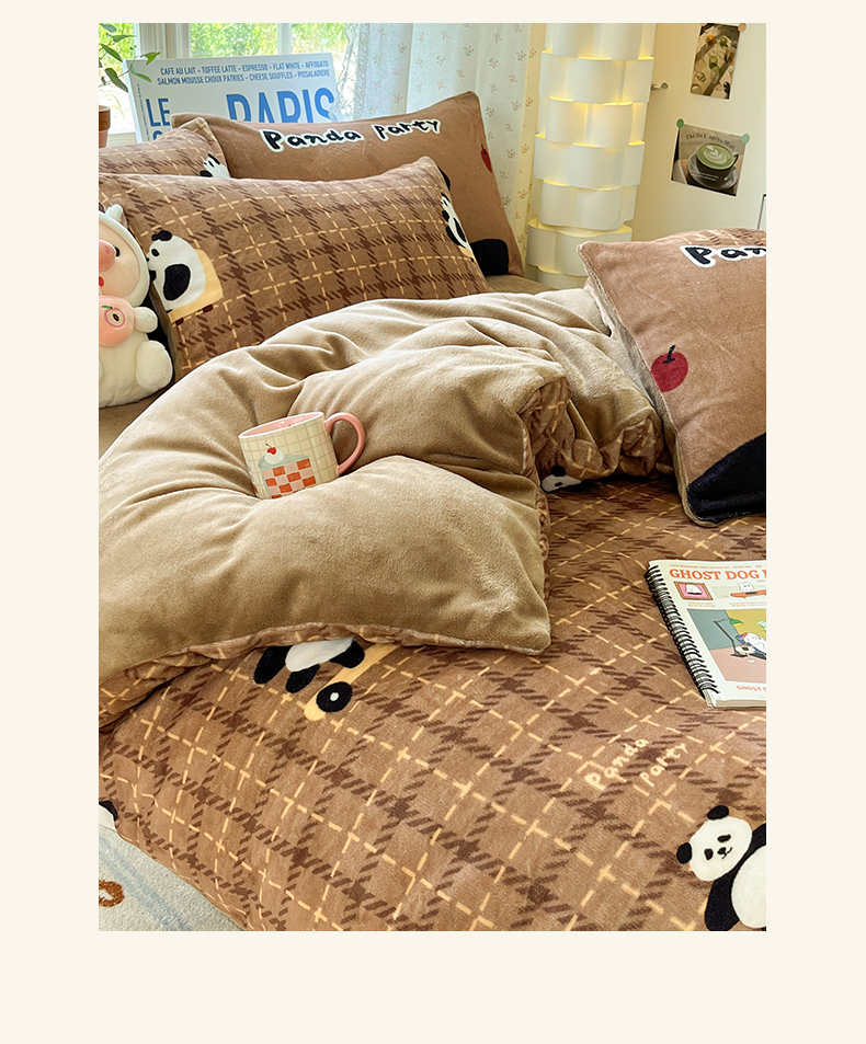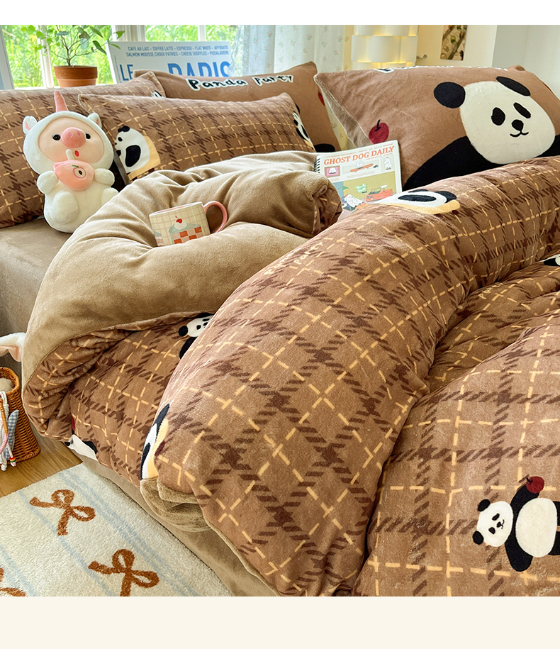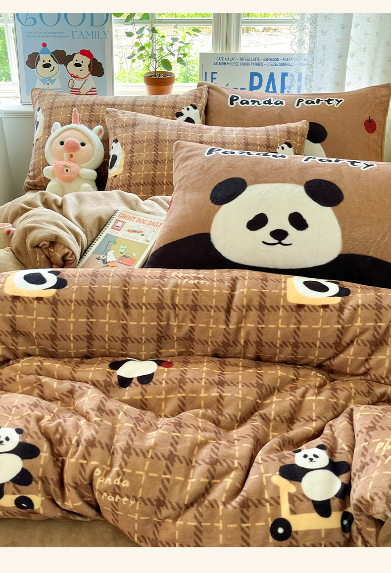 如一 2025新款高克重卡通印花牛奶绒四件套第二批 小熊猫