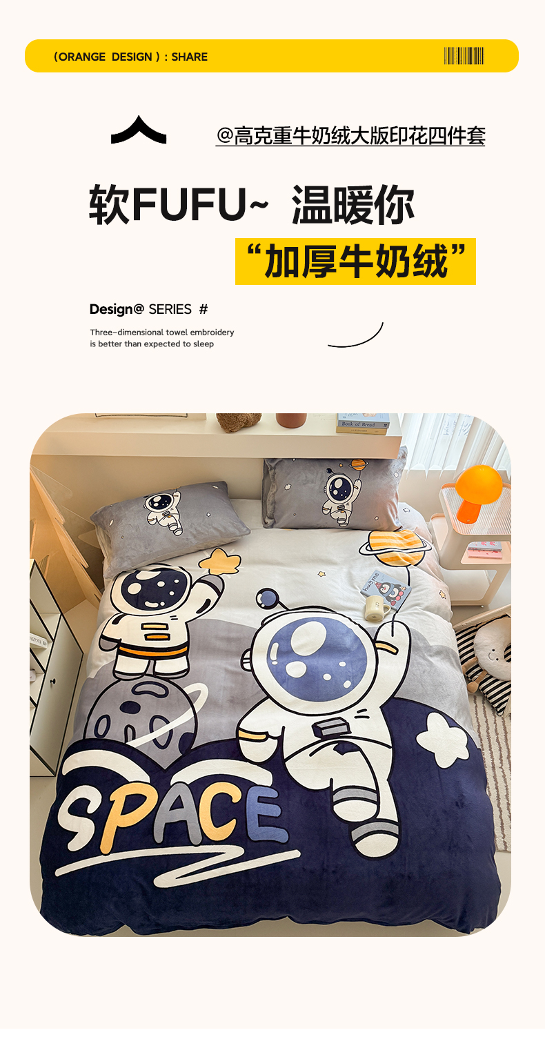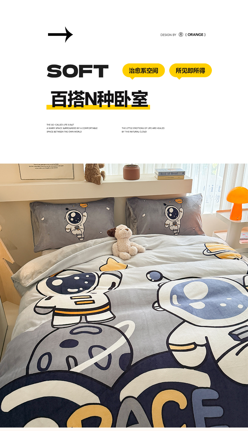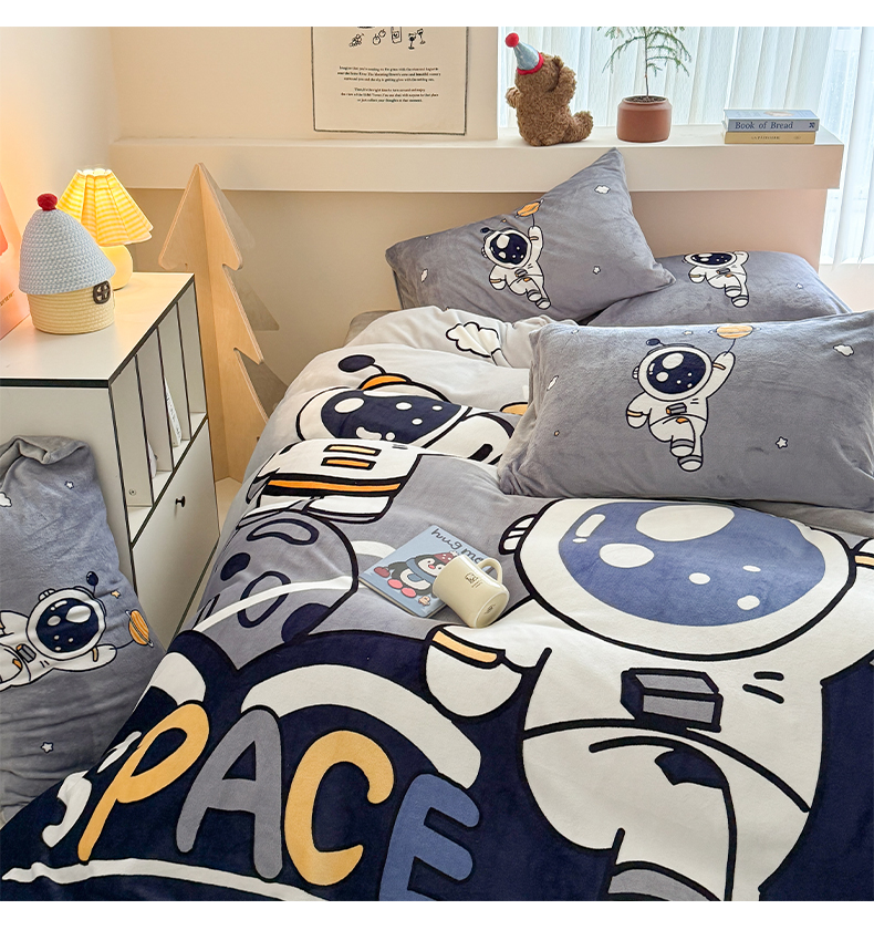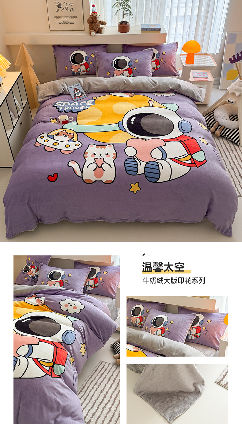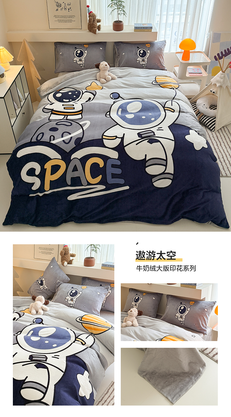 当前位置: 91家纺网 > 商品网购 > 床品套件 > 四件套 > 其它四件套 > 慕晨 2025新款卡通可爱大版印花牛奶绒加厚保暖小清新四件套直播 遨游太空