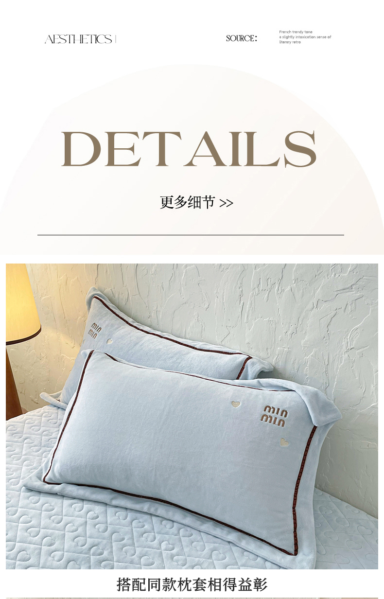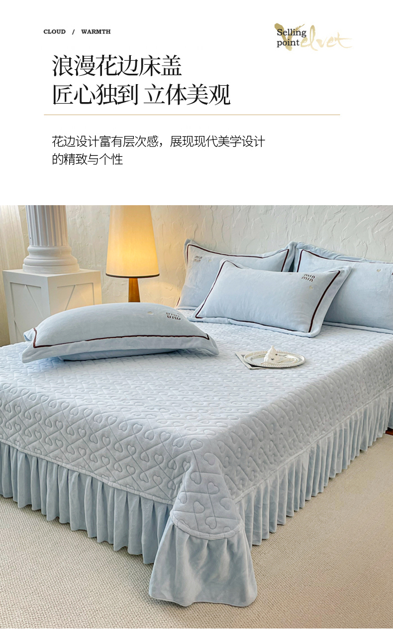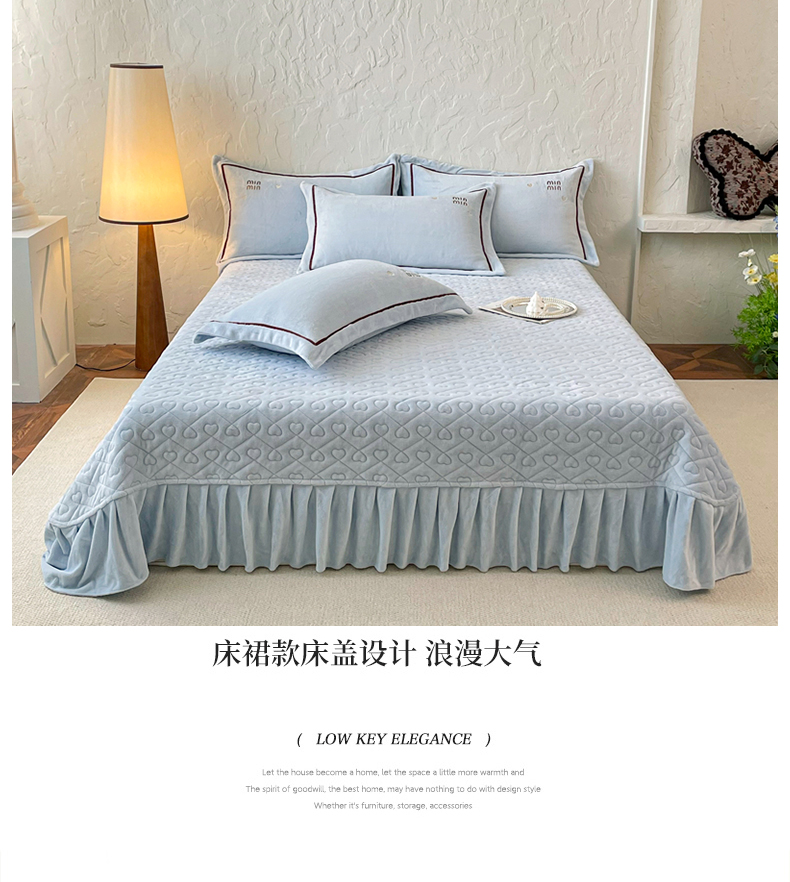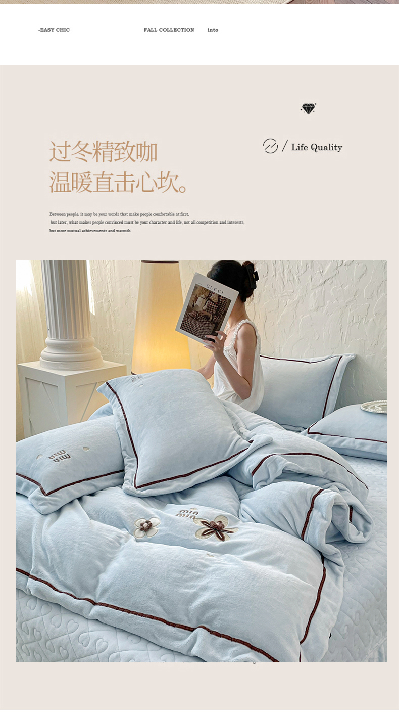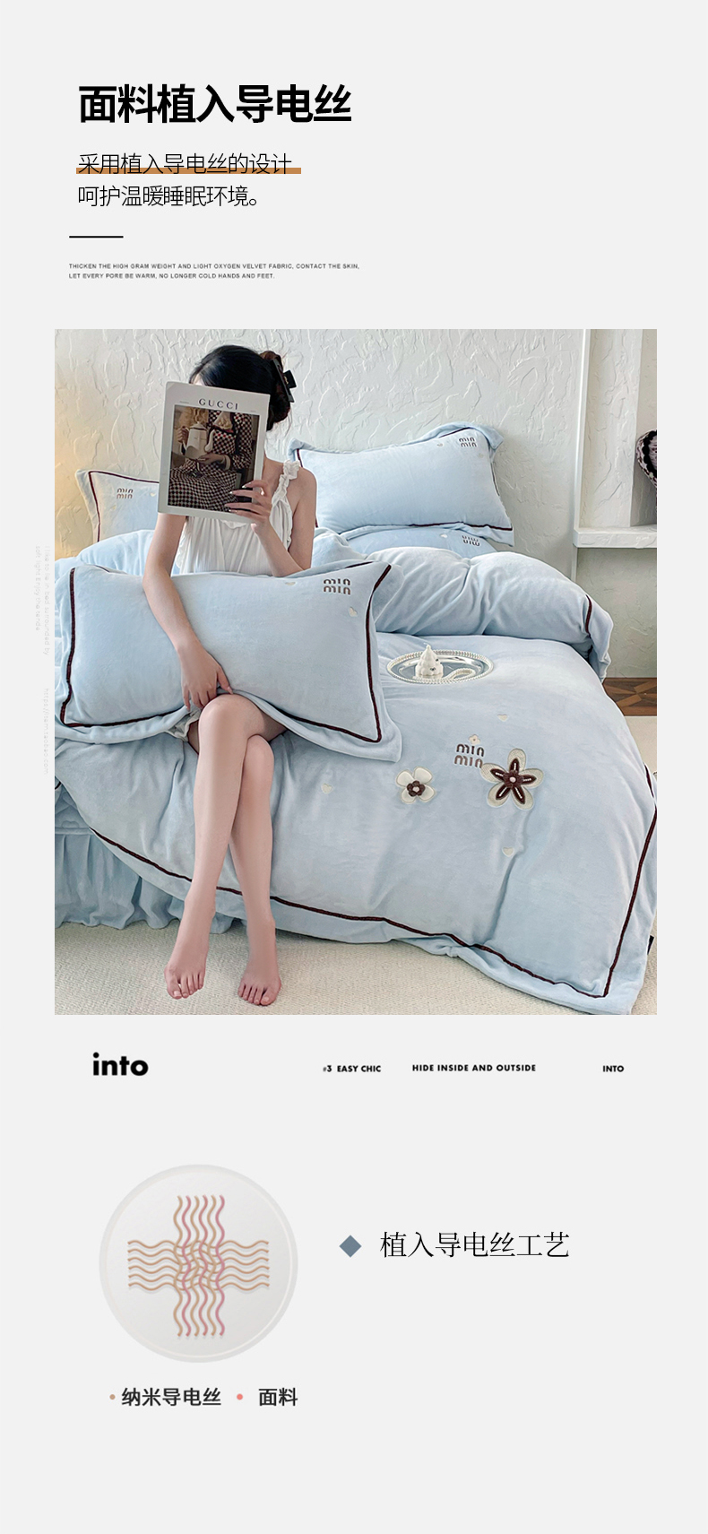 商品名称:金绣美居 2025新款加厚牛奶绒韩版床盖款绣花手工花保暖四件套-花弄影 花弄影-浅湖蓝