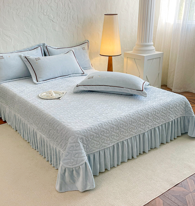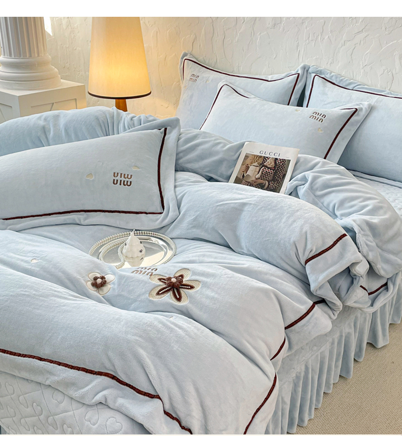 金绣美居 2025新款加厚牛奶绒韩版床盖款绣花手工花保暖四件套-花弄影 花弄影-浅湖蓝