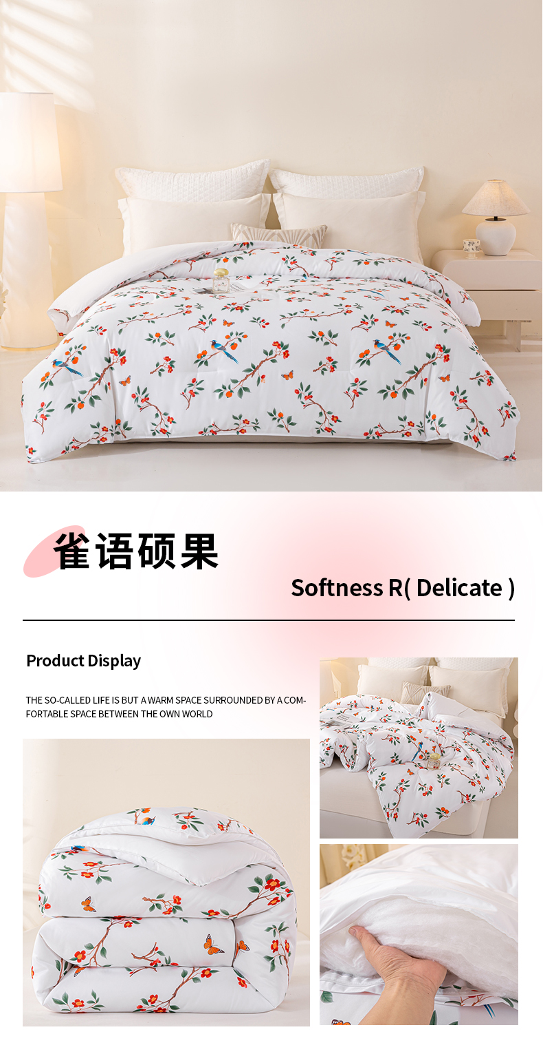 • 91家纺网 家纺一手货源 找家纺 好老表被业 2025新款印花云朵棉冬被四季被被子被芯 枝漾花庭