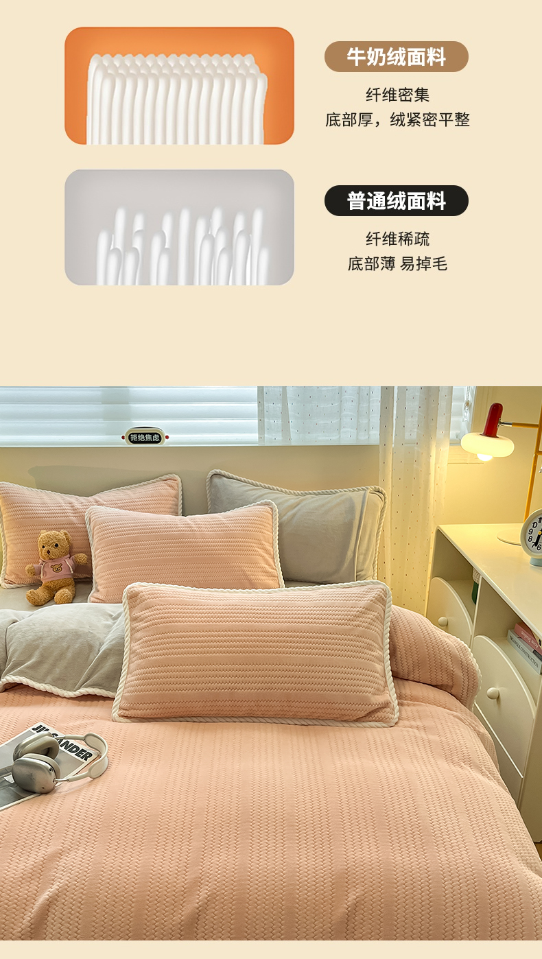 当前位置: 91家纺网 > 商品网购 > 床品套件 > 四件套 > 牛奶绒四件套 > 小叮当家纺仓储工厂店 2025新款亲肤舒适成品提花包边牛奶绒四件套-提花 提花-粉灰