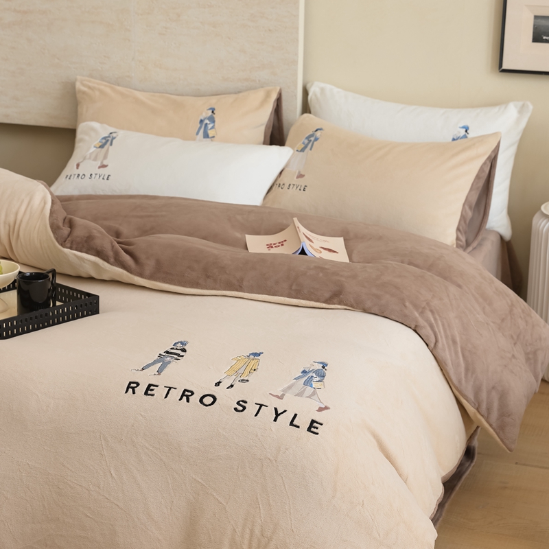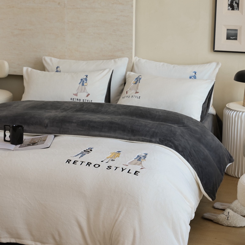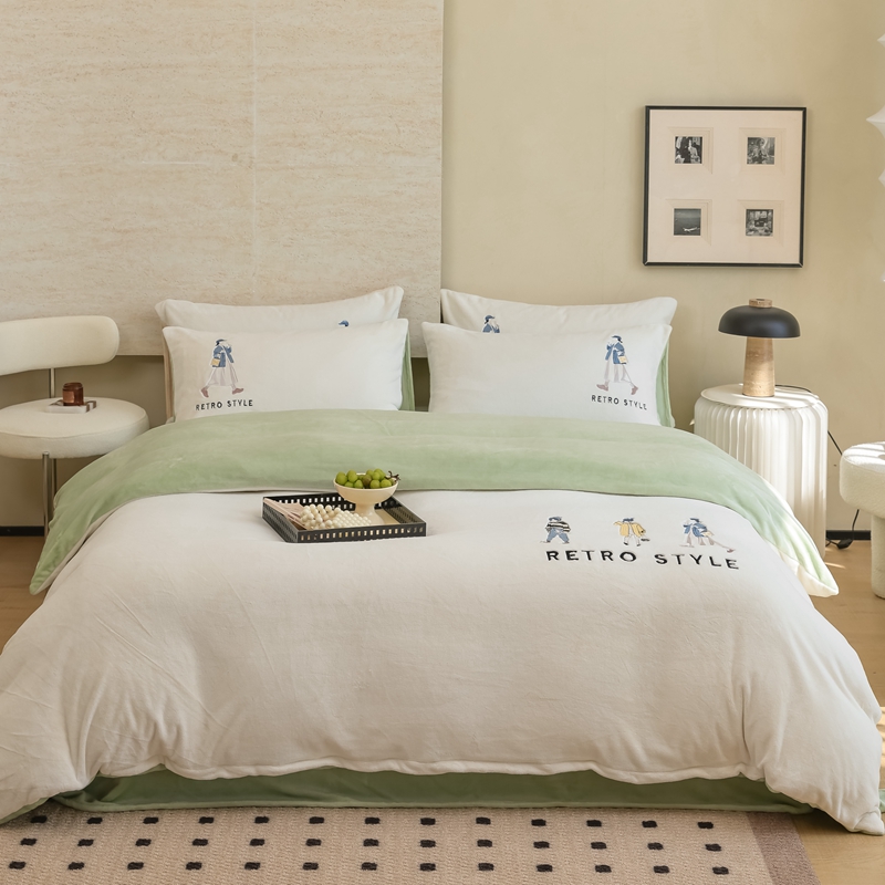(总)121【牛奶绒刺绣四件套】2025新款毛毯被子四件套单件床单被套床笠珊瑚绒牛奶绒冬被法兰绒兔毛绒刺绣男孩-Boy系列场景二