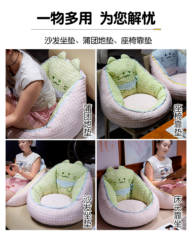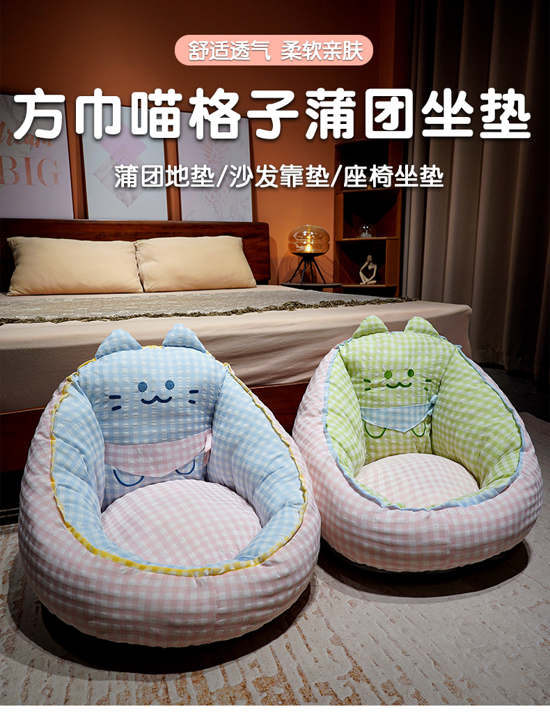 商品名称:(总)仟亿莱 2025新款三维立体PP棉方巾喵格子蒲团坐垫