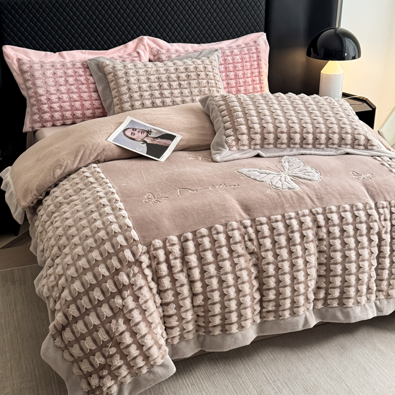 商品名称:保罗圣迪奥 2025新款350克剪花牛奶绒四件套-三拼角蝴蝶 三拼角蝴蝶-深灰