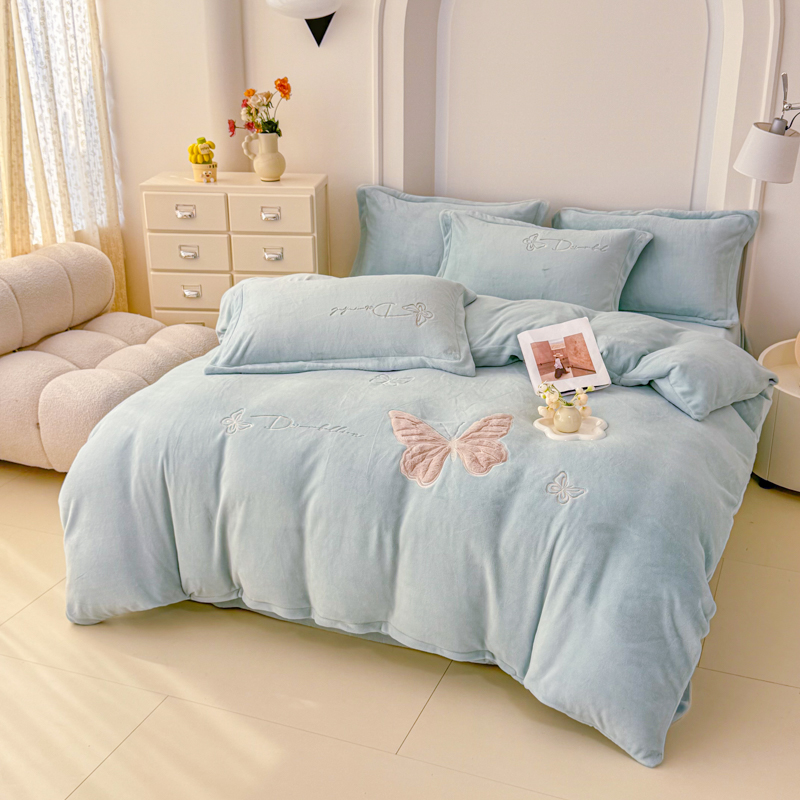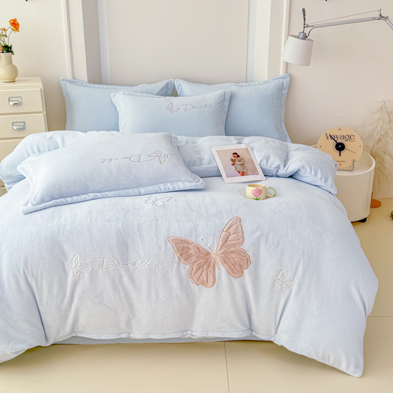 商品名称:保罗圣迪奥 2025新款250克全消光牛奶绒四件套-蝶曼 蝶曼-蓝色