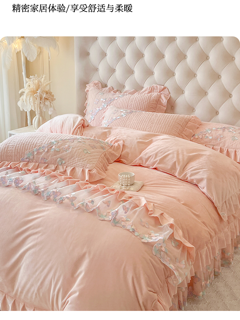 (总)瑞宝 2025新款牛奶绒花边床盖四件套-蝶舞花语(控价 298起 ),蝶舞花语-奶茶棕,蝶舞花语-蜜粉,蝶舞花语-奶油米,蝶舞花语-青柠绿,蝶舞花语-香芋紫,蝶舞花语-星空蓝