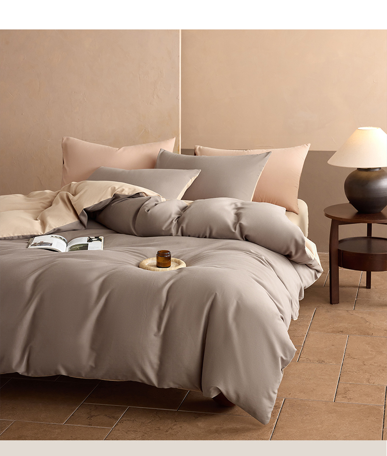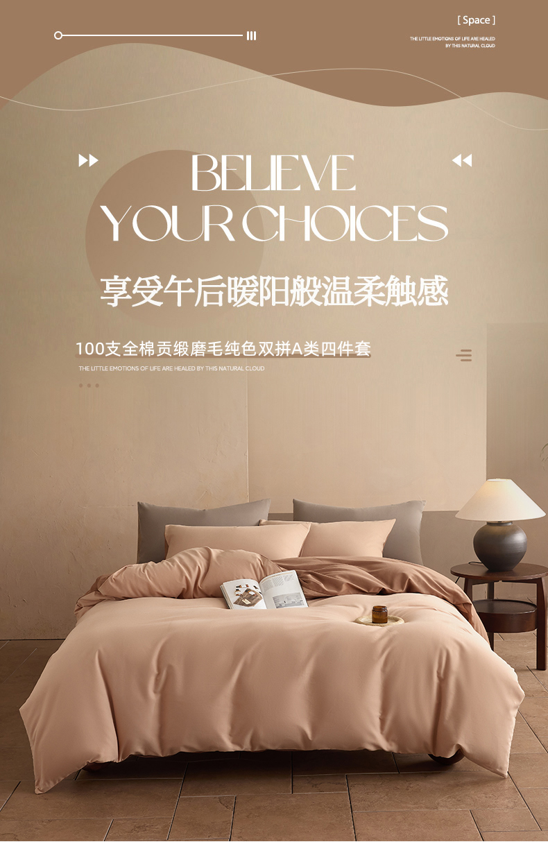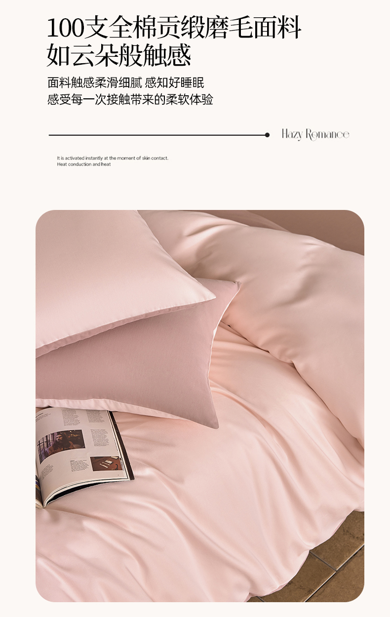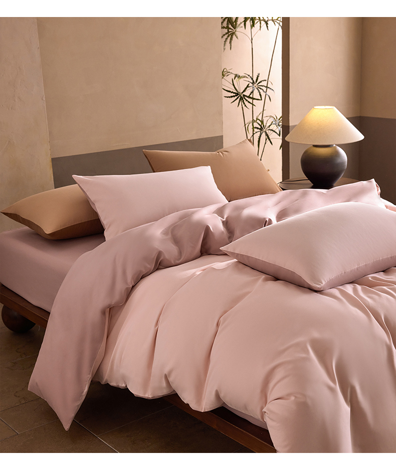 商品名称:寐居家纺 2025新款A类100支全棉贡缎磨毛纯色双拼四件套-熙梦 煦梦-蕊粉