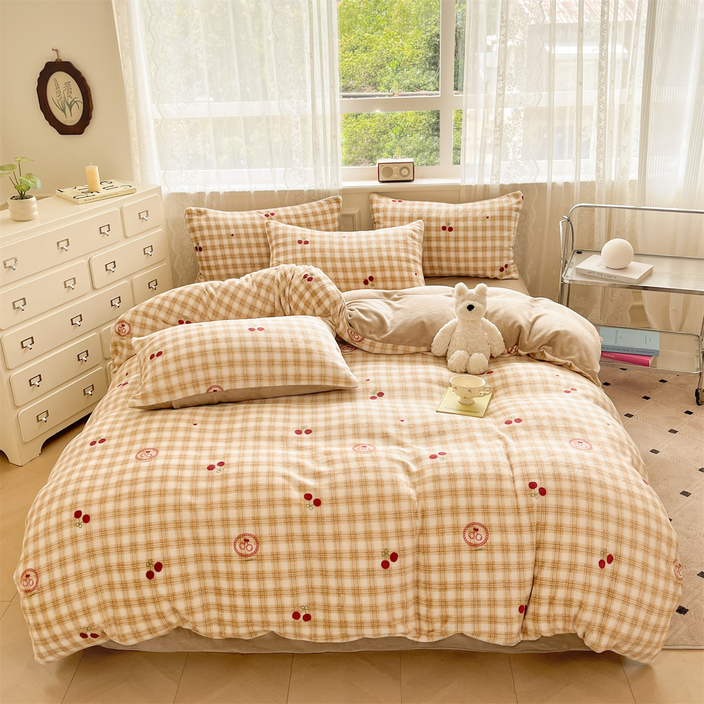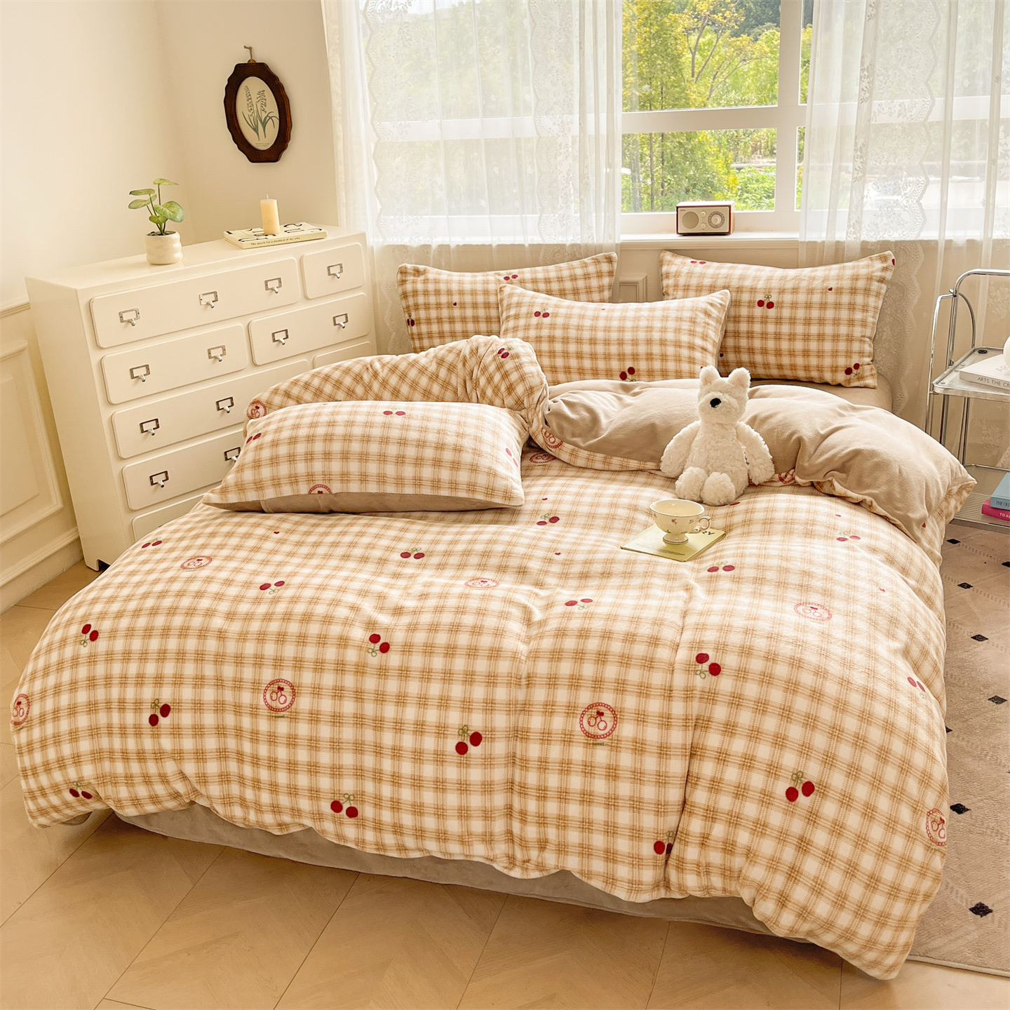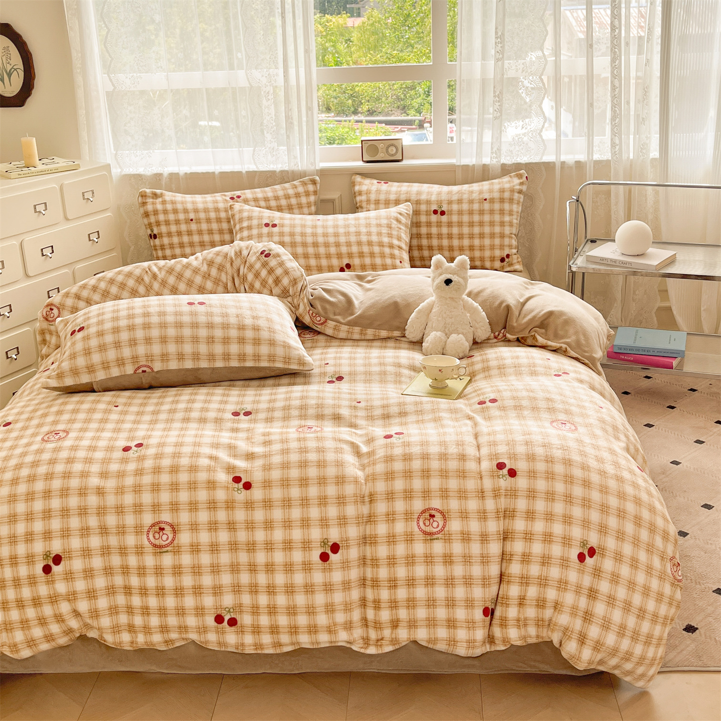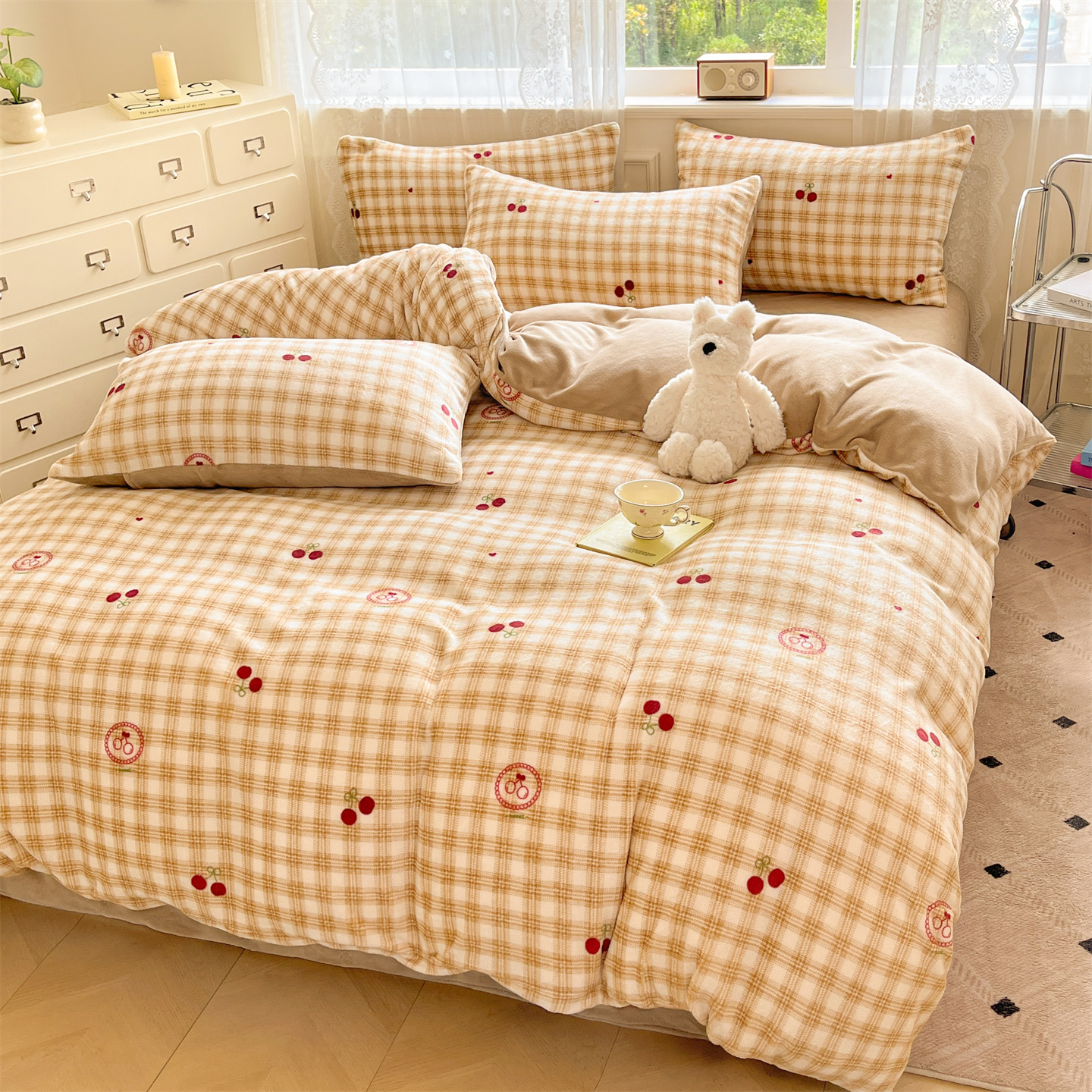 欧尚家纺 2025新款跑量牛奶绒四件套 樱桃语录