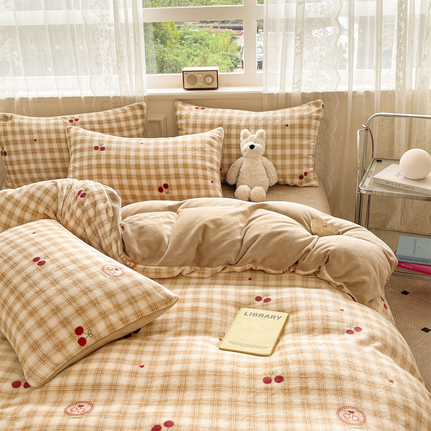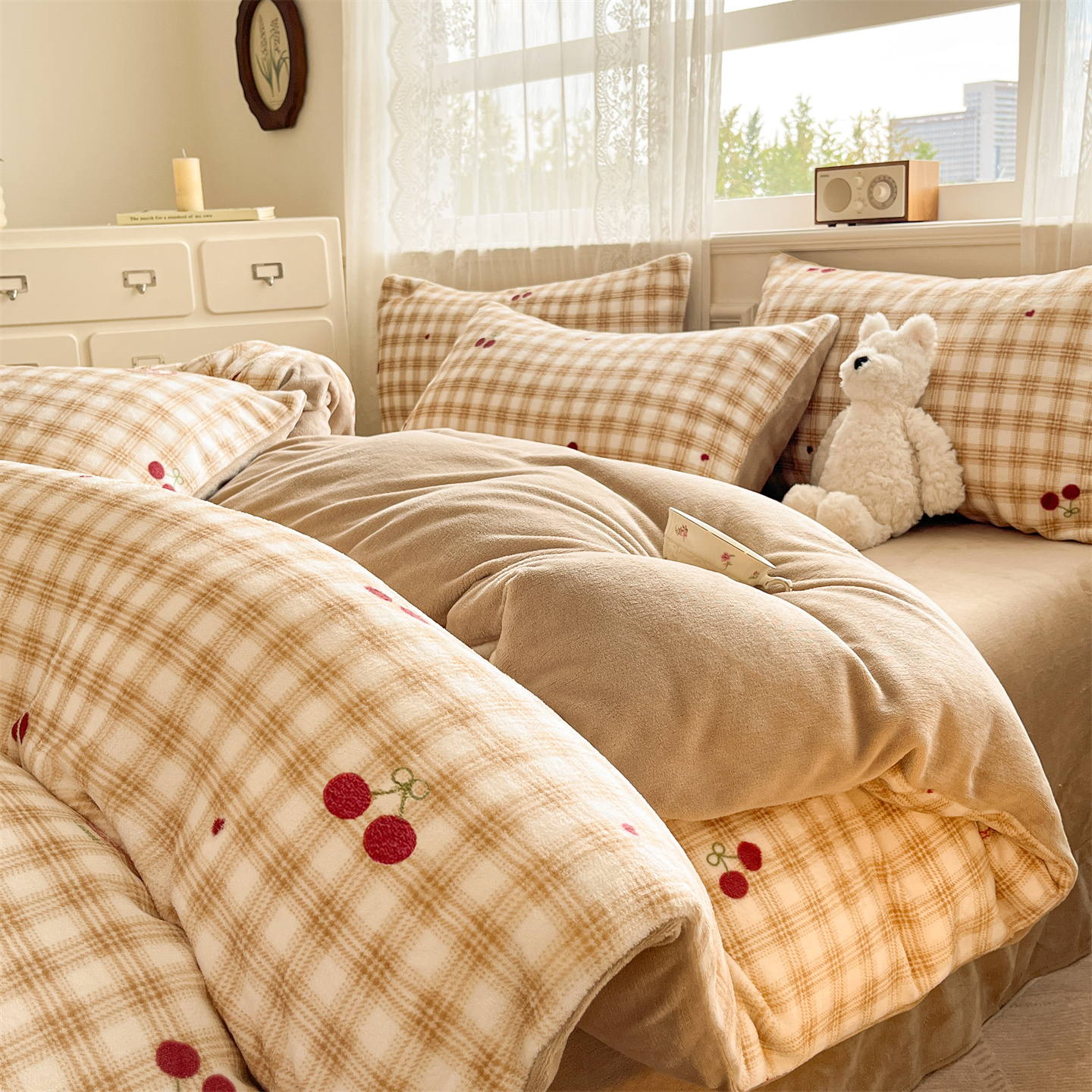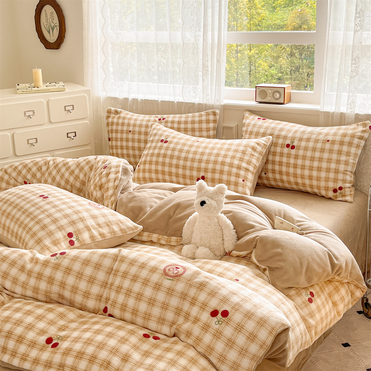 欧尚家纺 2025新款跑量牛奶绒四件套 樱桃语录