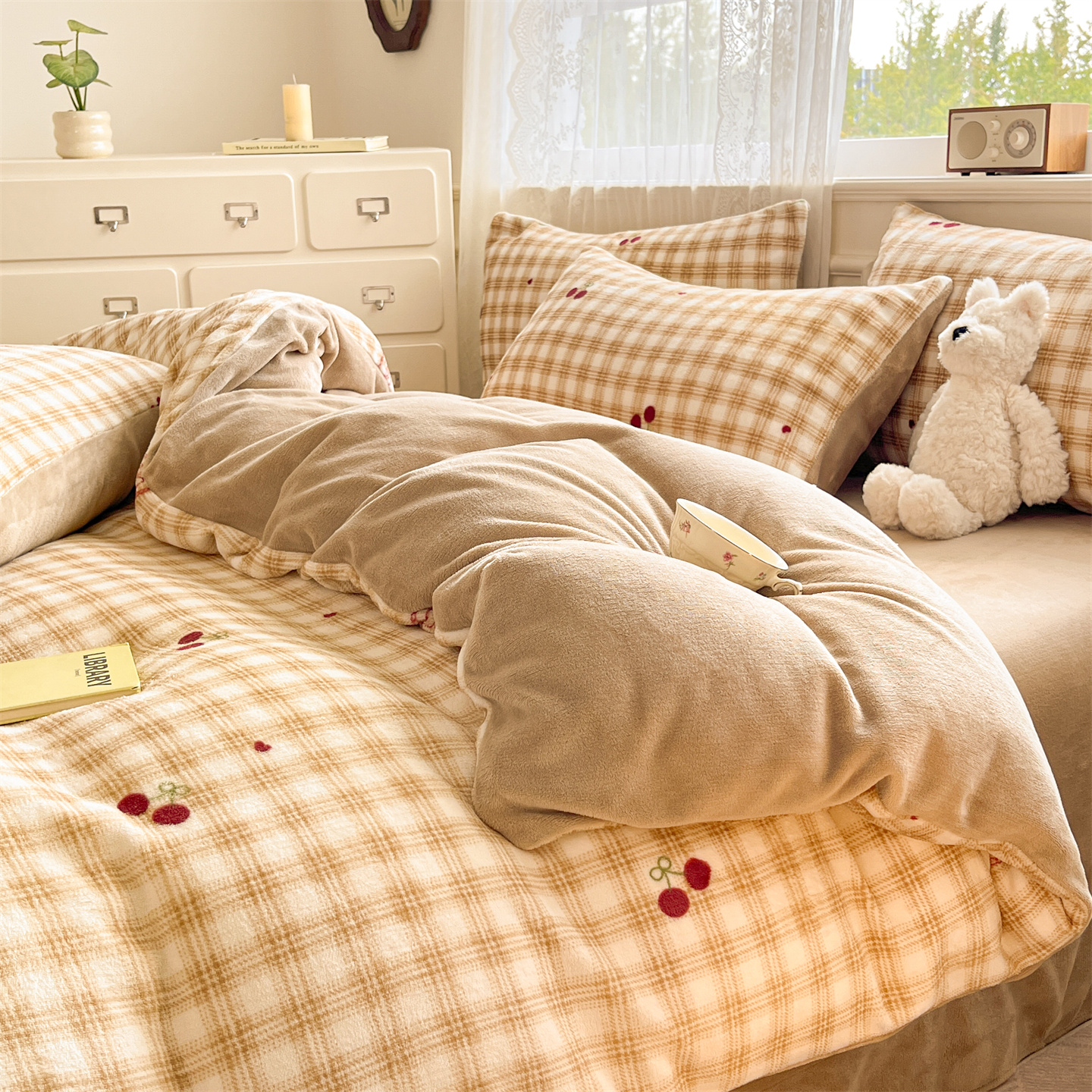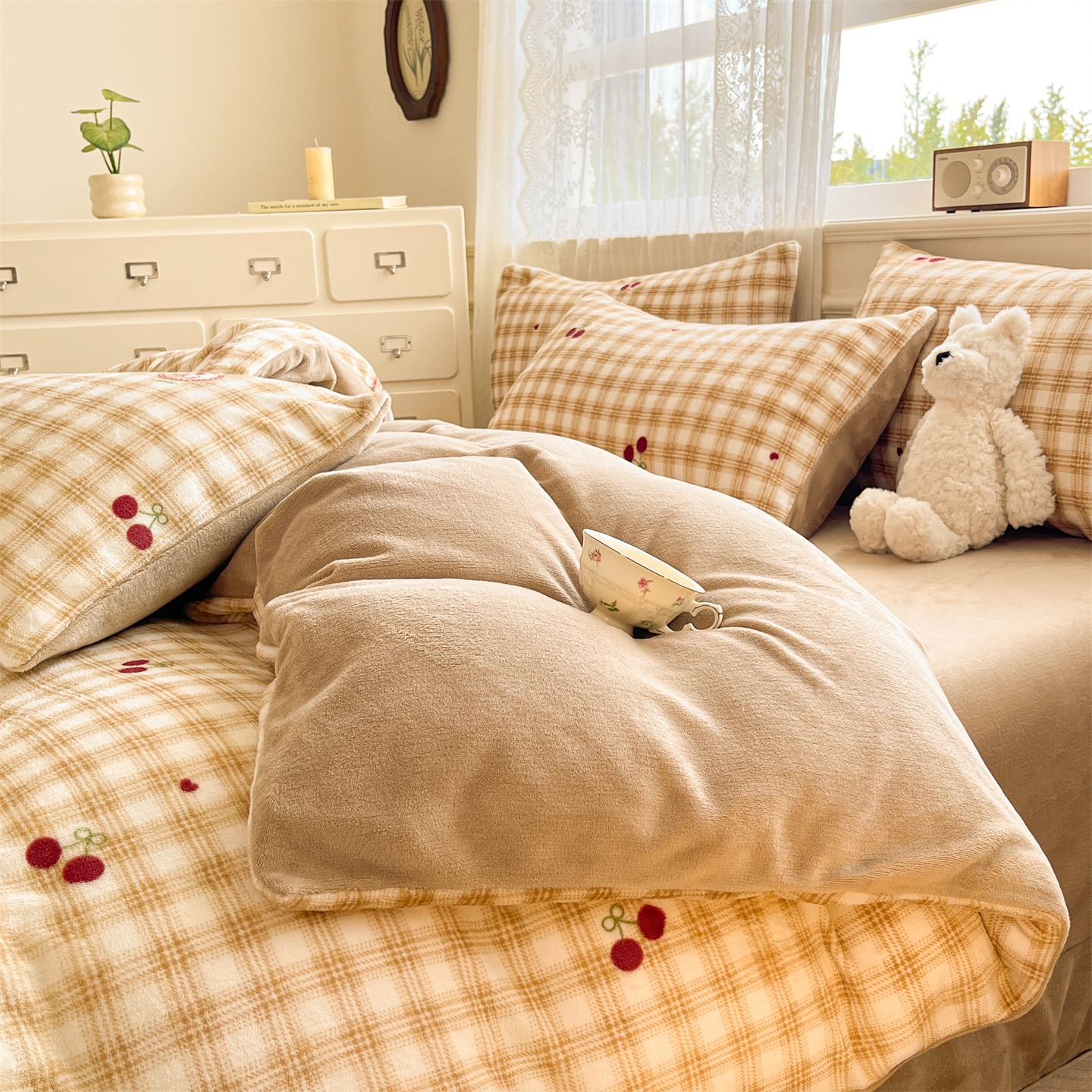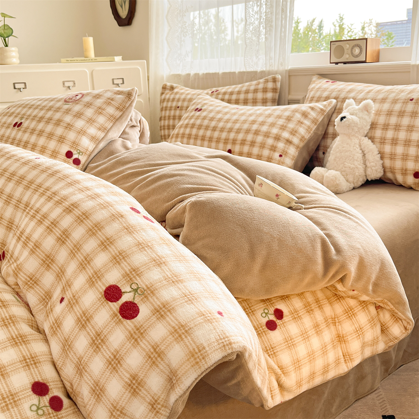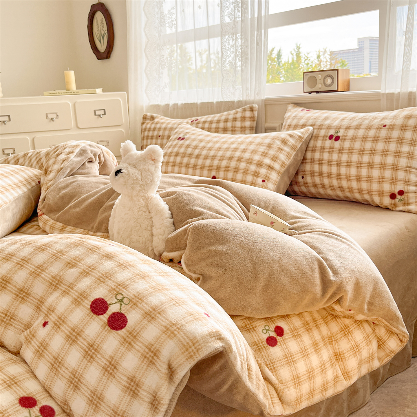 欧尚家纺 2025新款跑量牛奶绒四件套 樱桃语录