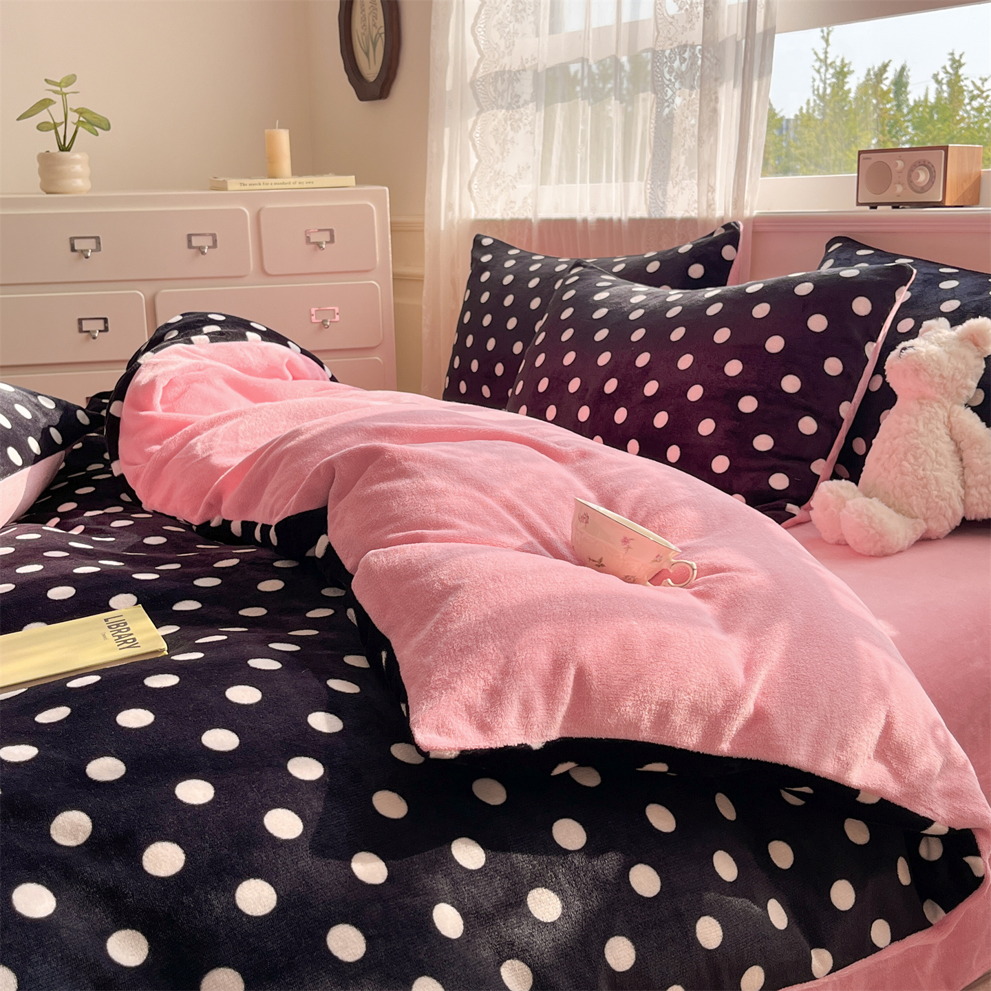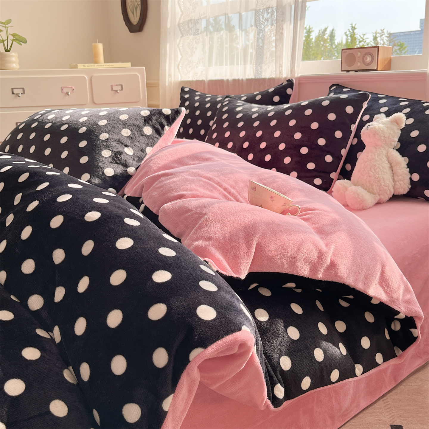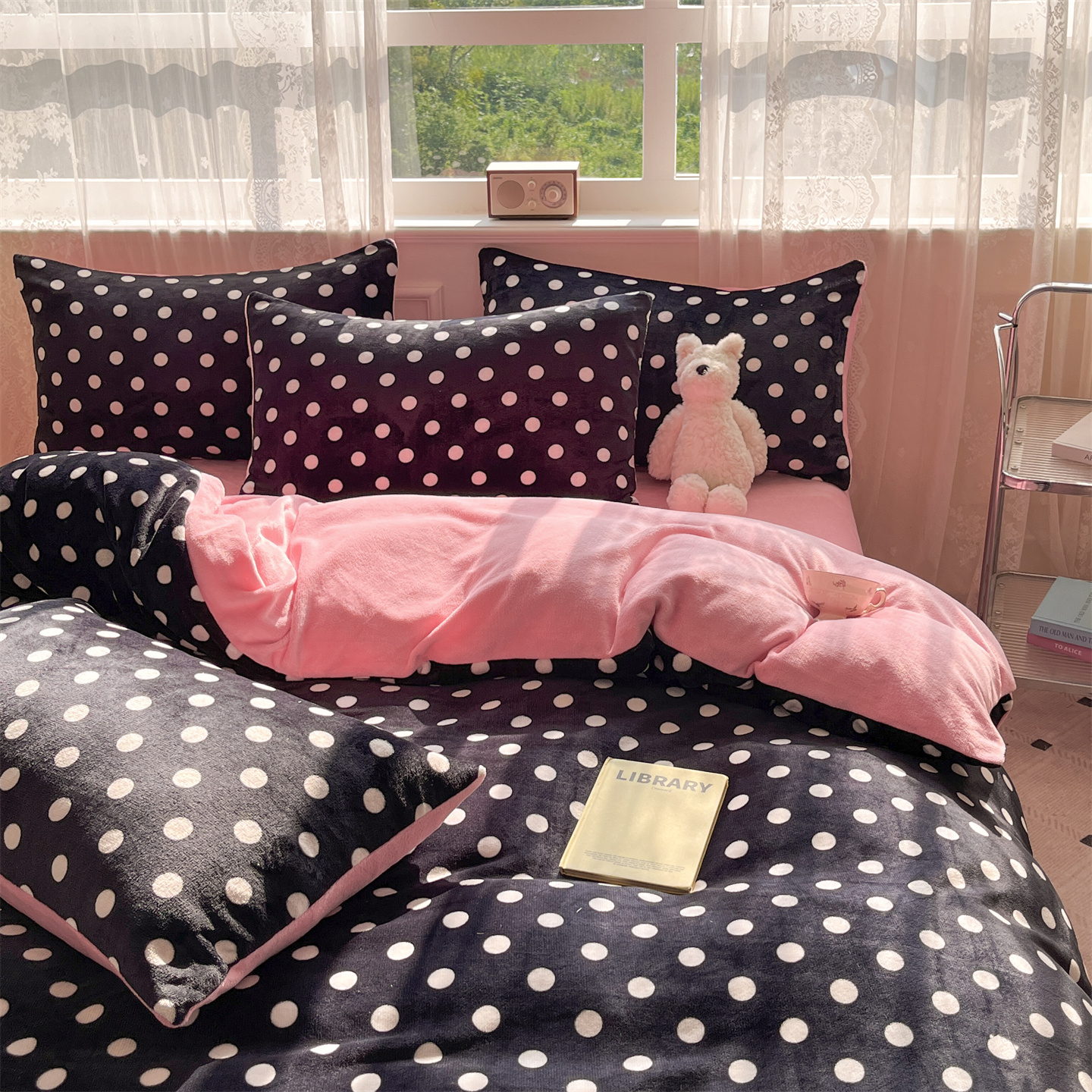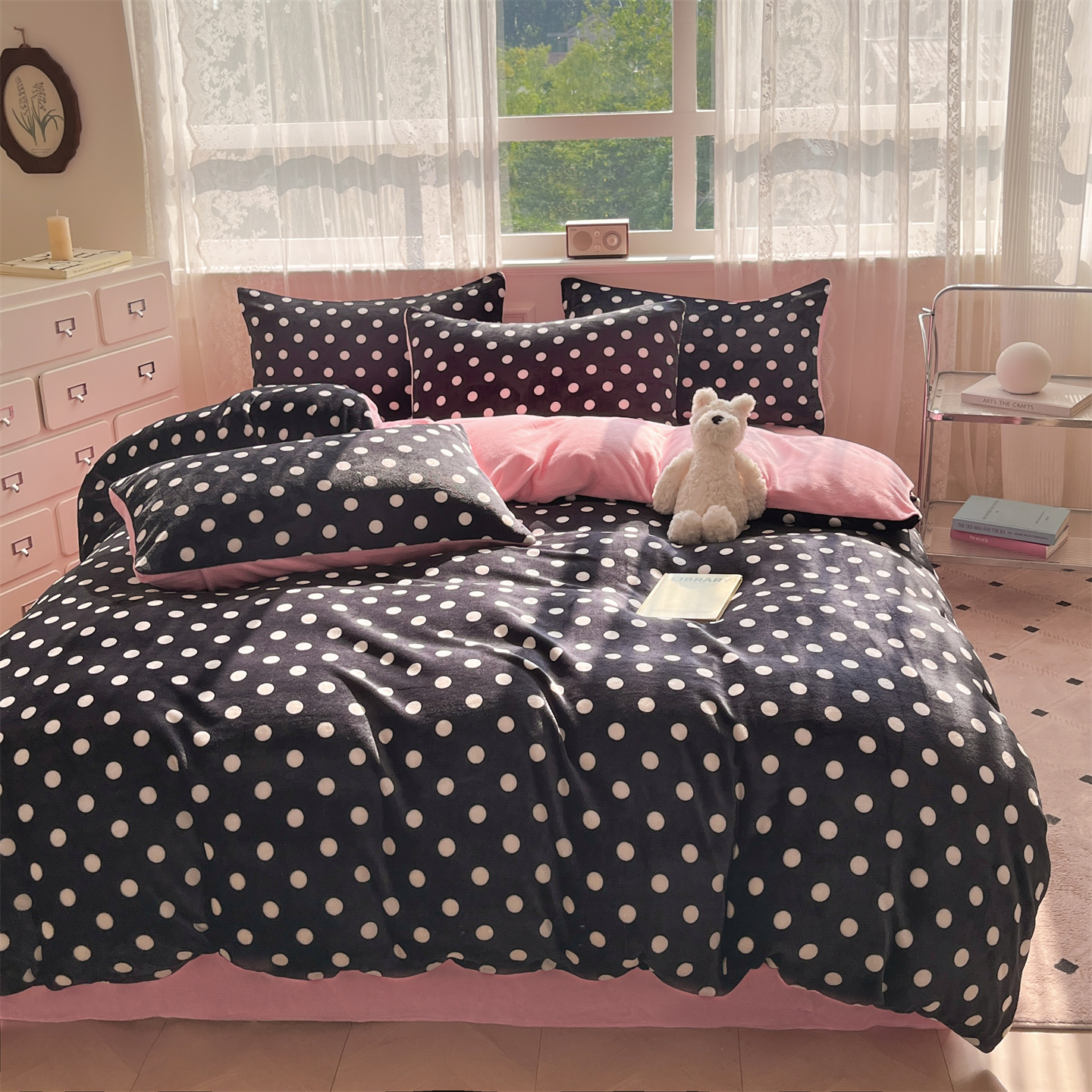 欧尚家纺 2025新款跑量牛奶绒四件套 黑波点