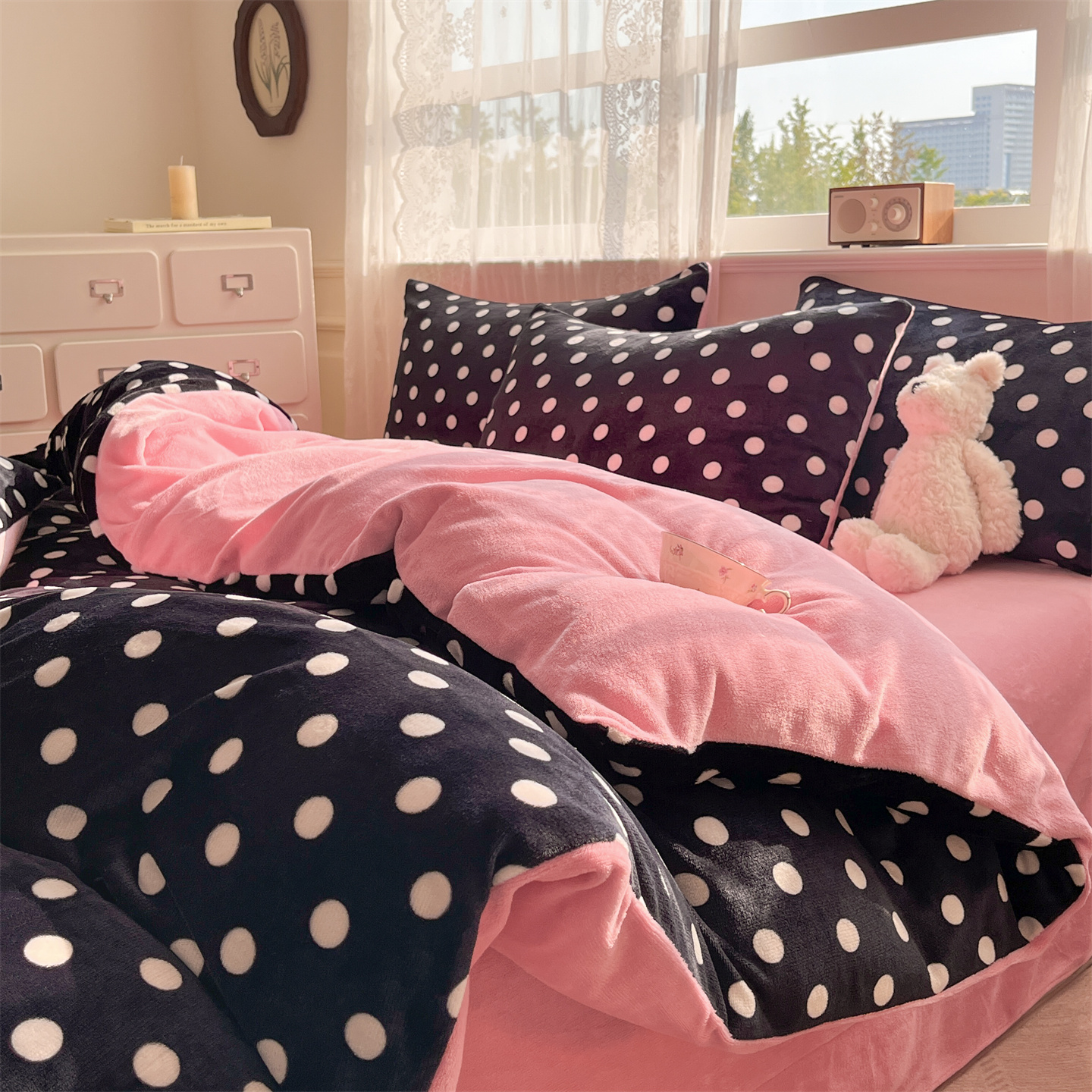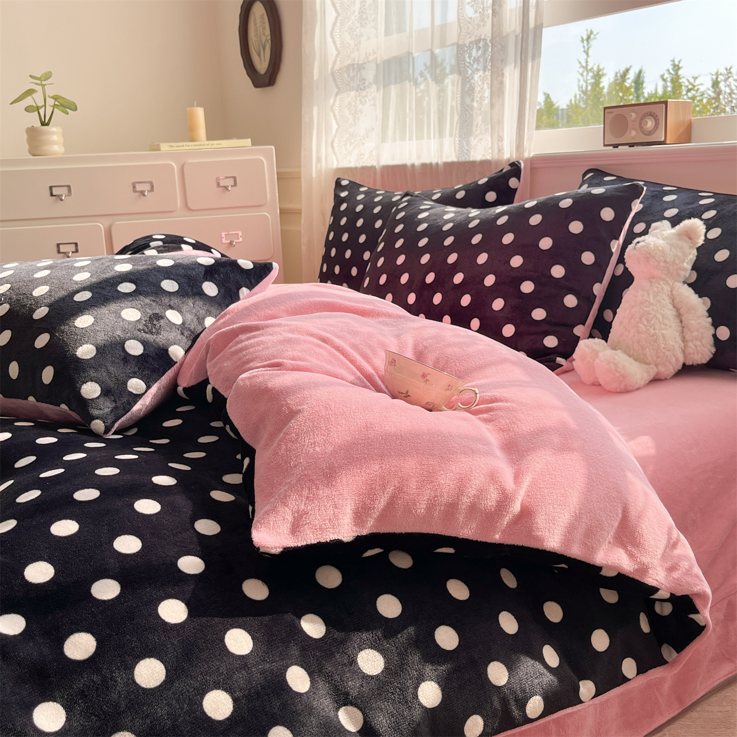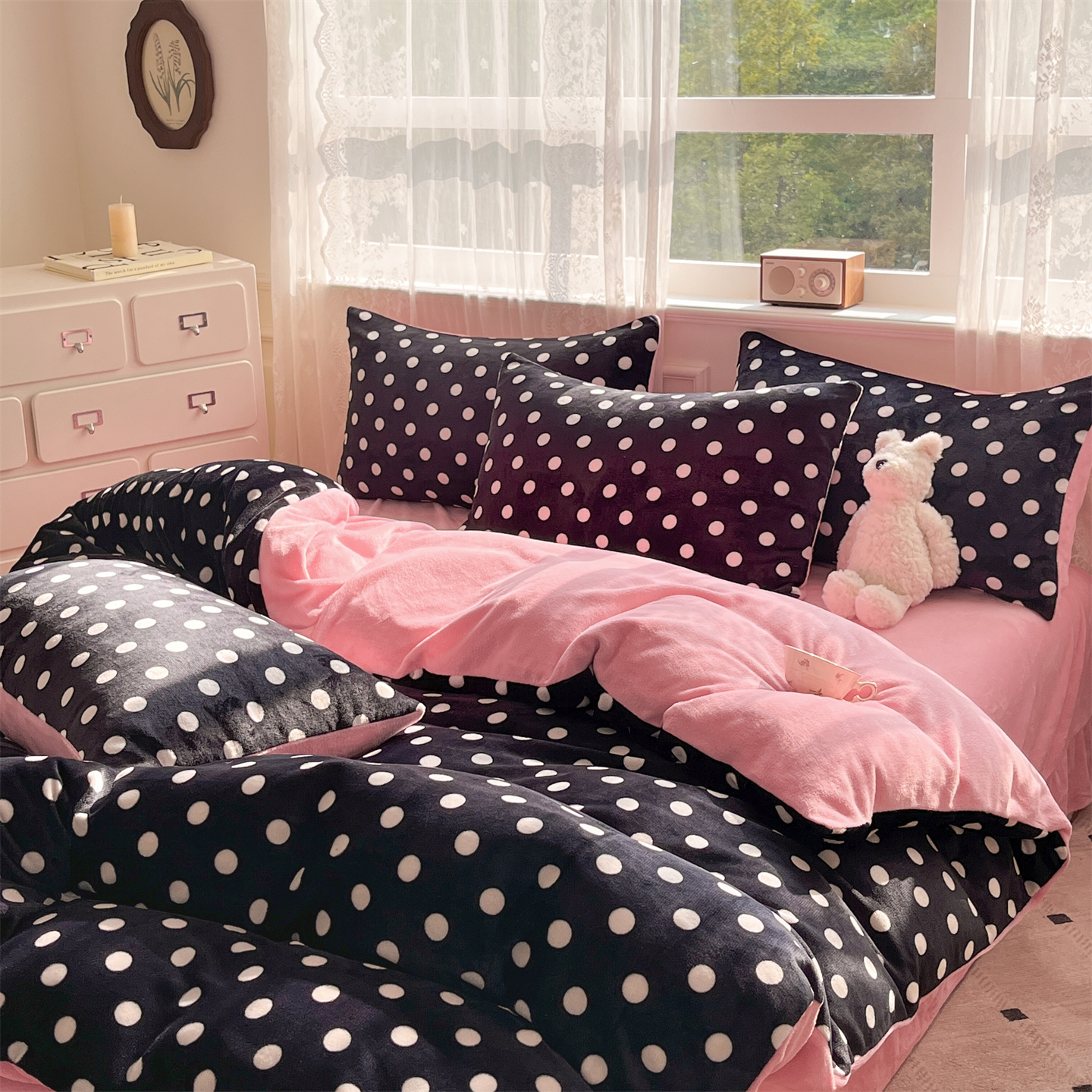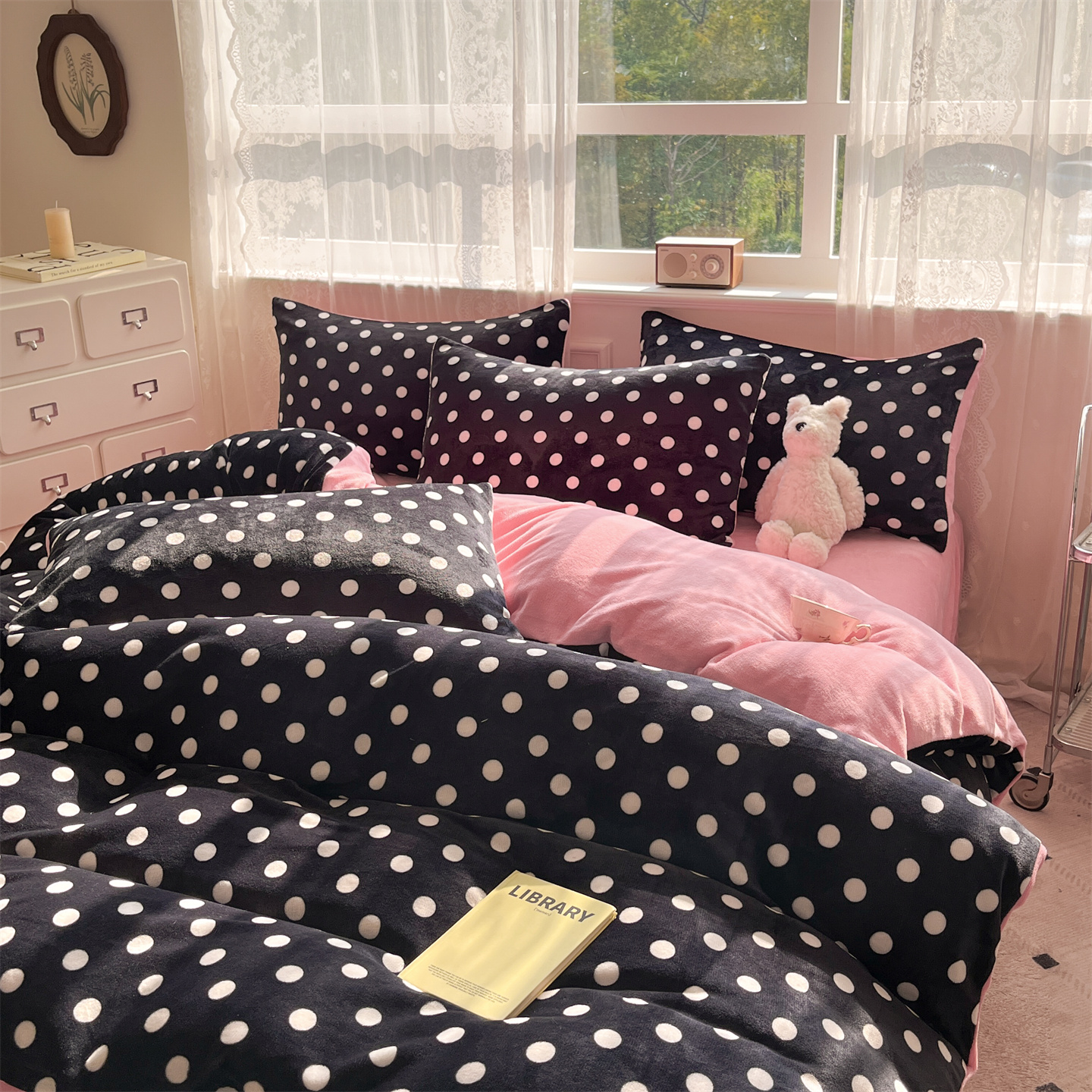 欧尚家纺 2025新款跑量牛奶绒四件套 黑波点