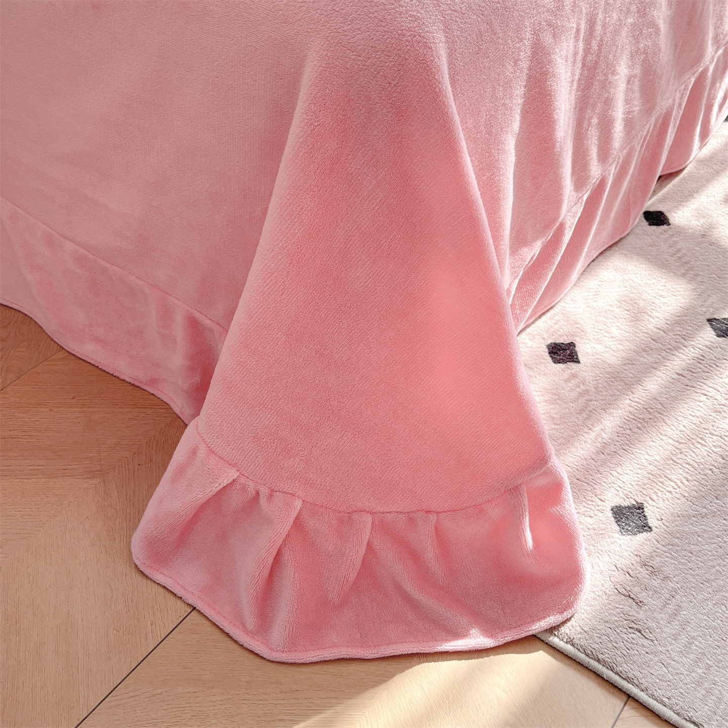 (总)欧尚 2025新款牛奶绒花边床盖四件套,粉点点,花小玉,咖色小心心,蓝点点,慕然,仙女粉,仙女紫