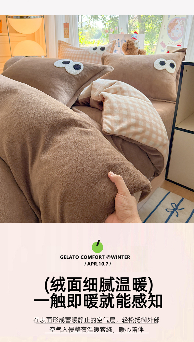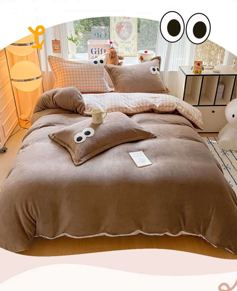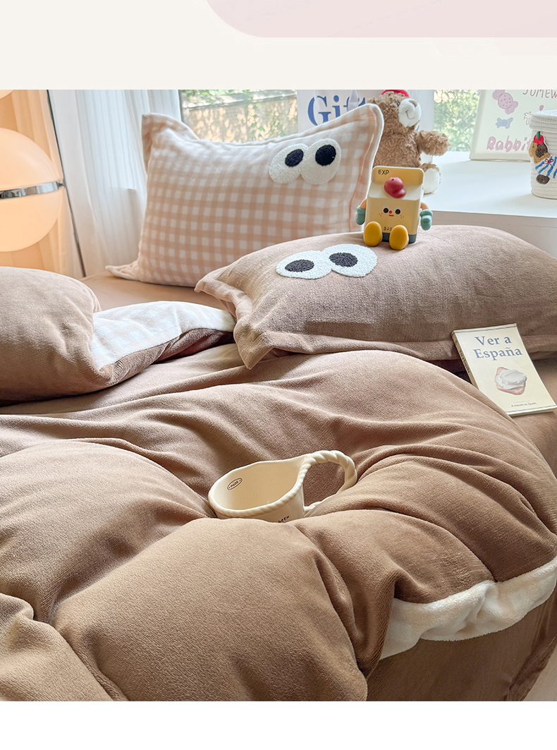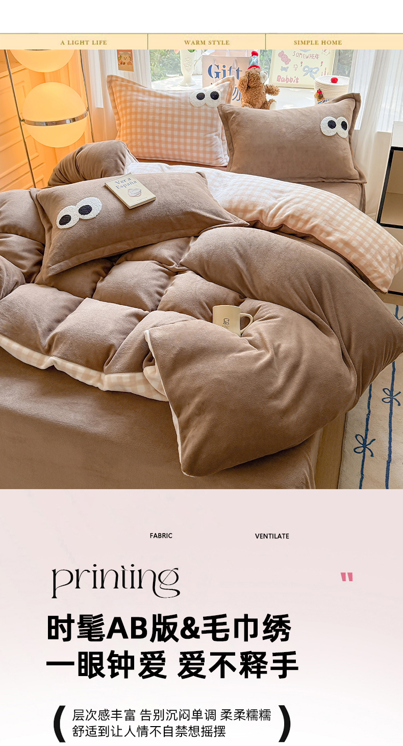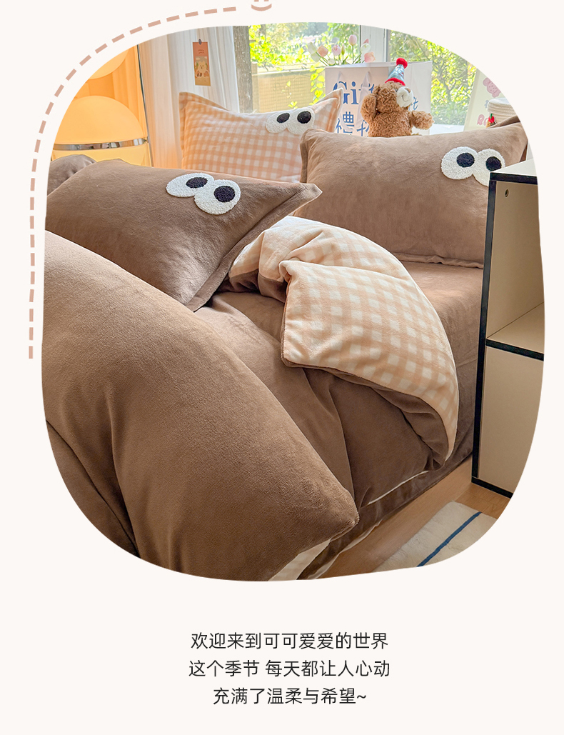 当前位置: 91家纺网 > 商品网购 > 床品套件 > 四件套 > 牛奶绒四件套 > 艾特你 2025新款毛巾绣大眼睛撞色奶油格子牛奶绒四件套 绒-卡其咖格