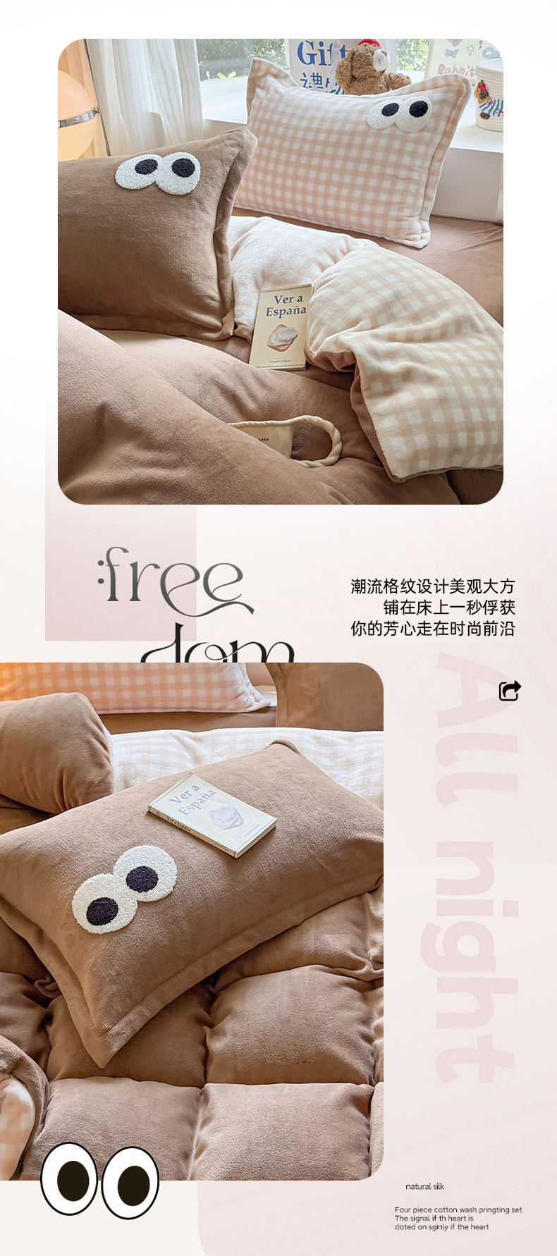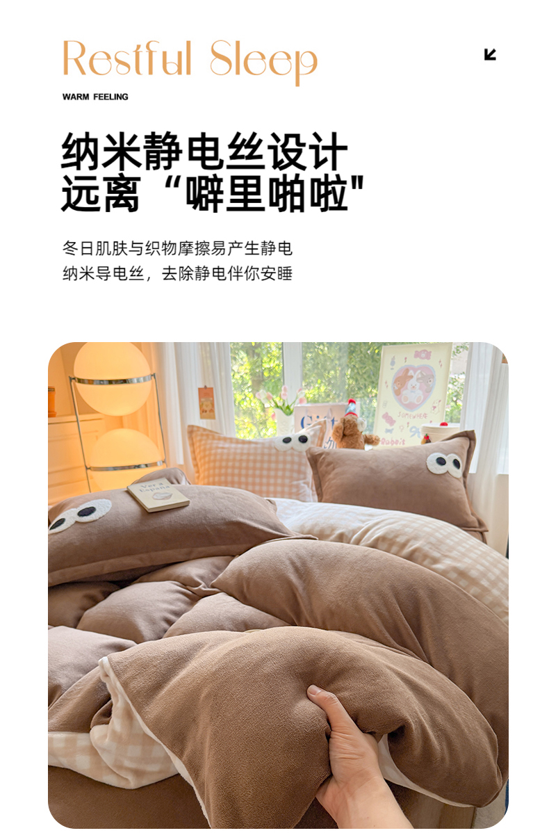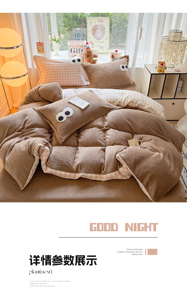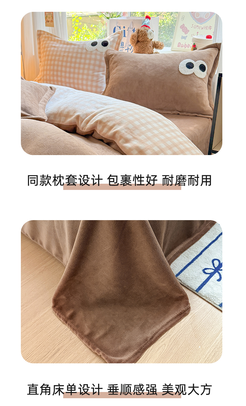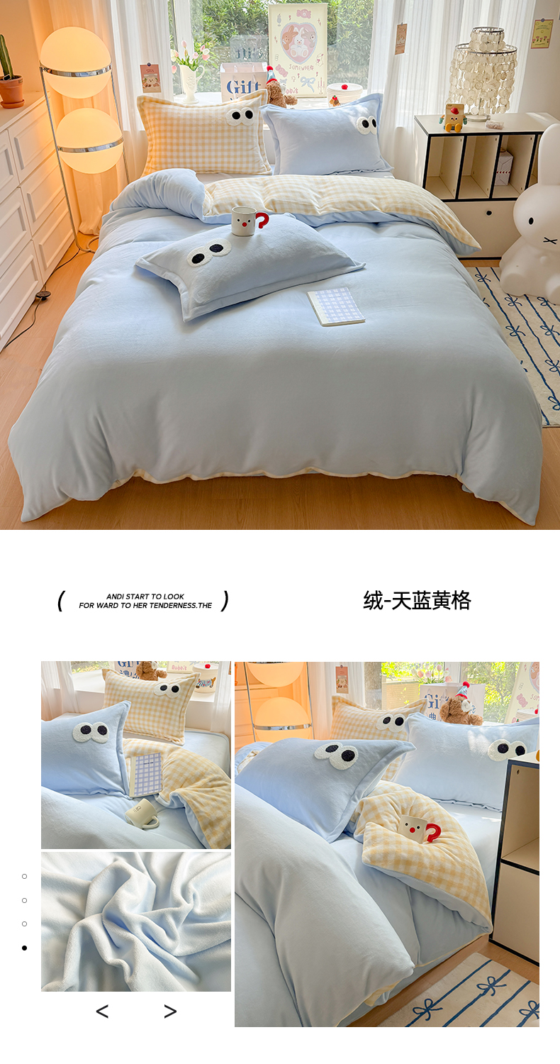 当前位置: 91家纺网 > 商品网购 > 床品套件 > 四件套 > 牛奶绒四件套 > 艾特你 2025新款毛巾绣大眼睛撞色奶油格子牛奶绒四件套 绒-卡其咖格