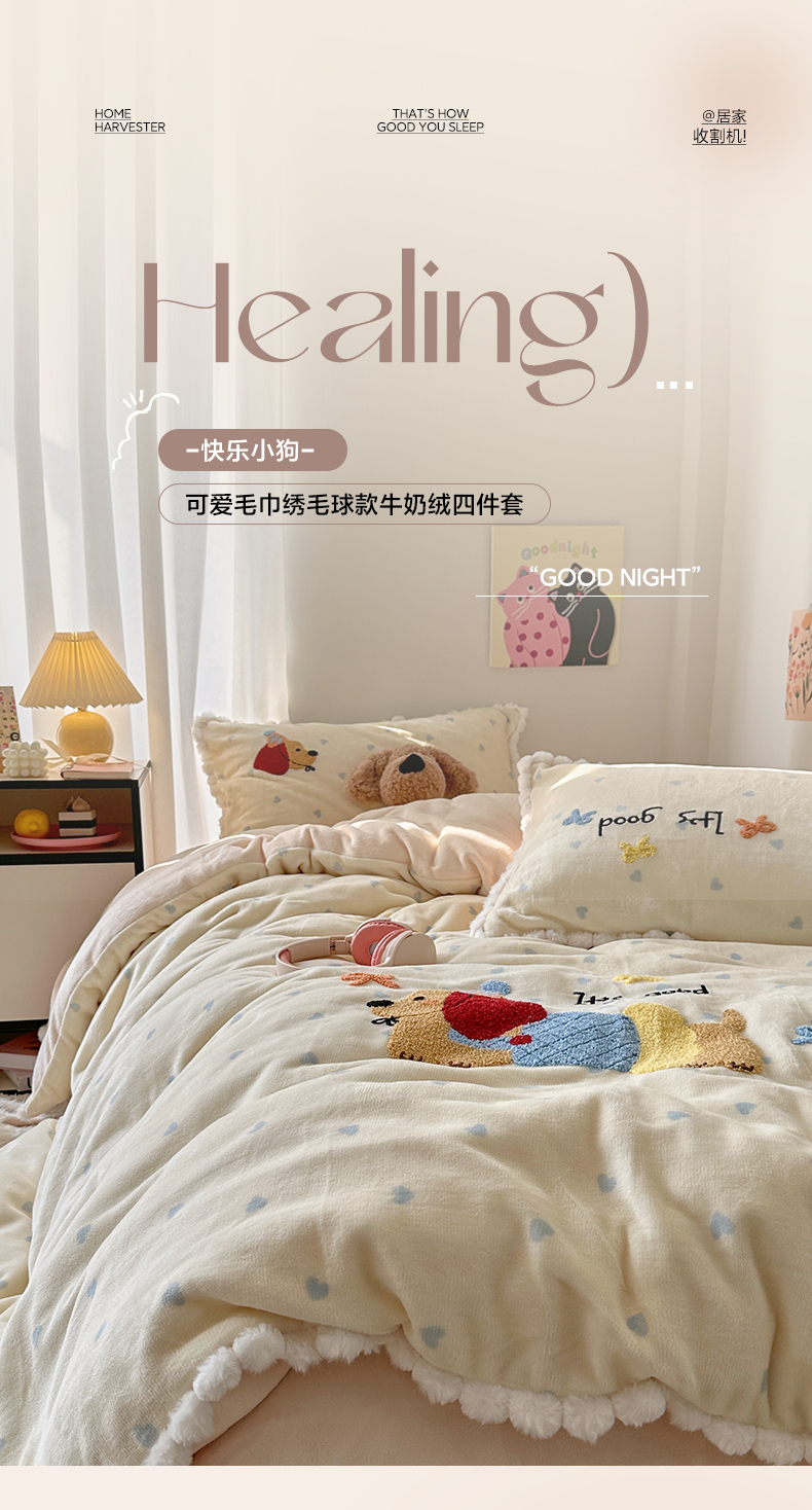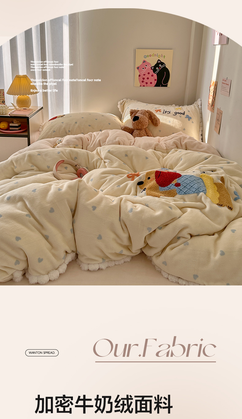 当前位置: 91家纺网 > 商品网购 > 床品套件 > 四件套 > 牛奶绒四件套 > 艾咪-Amy ntmy 2025新款可爱毛巾绣毛球款牛奶绒四件套-快乐小狗 快乐小狗-黄