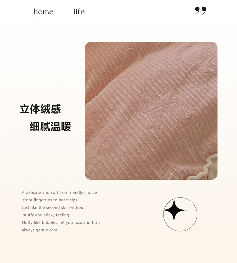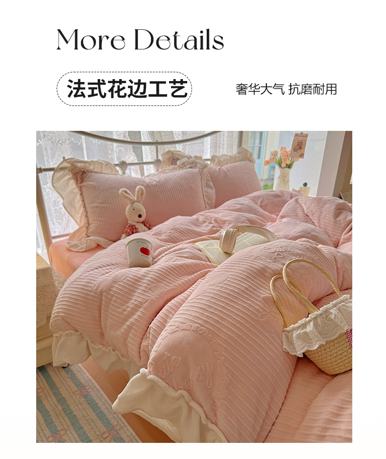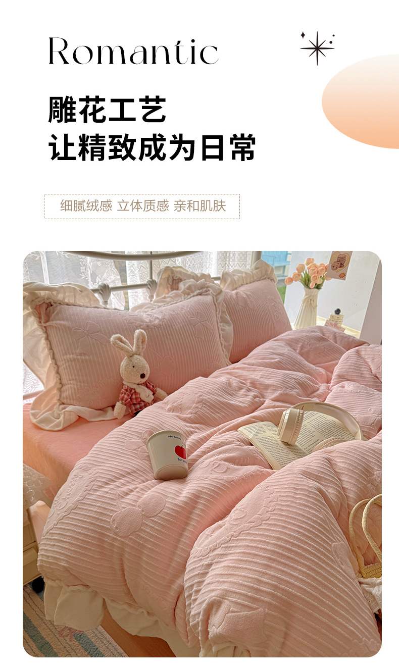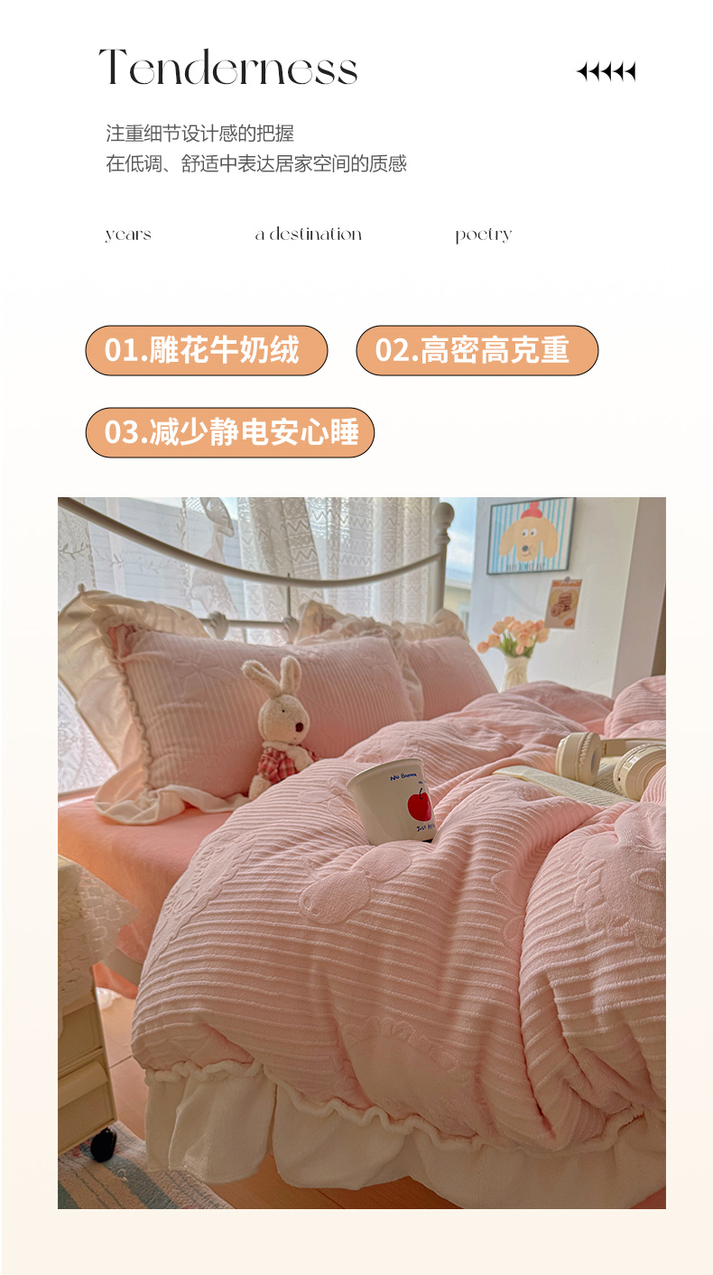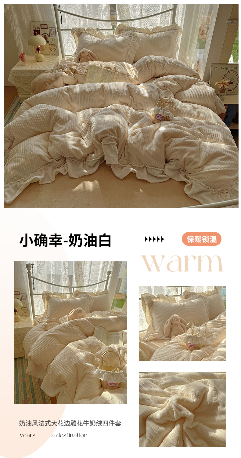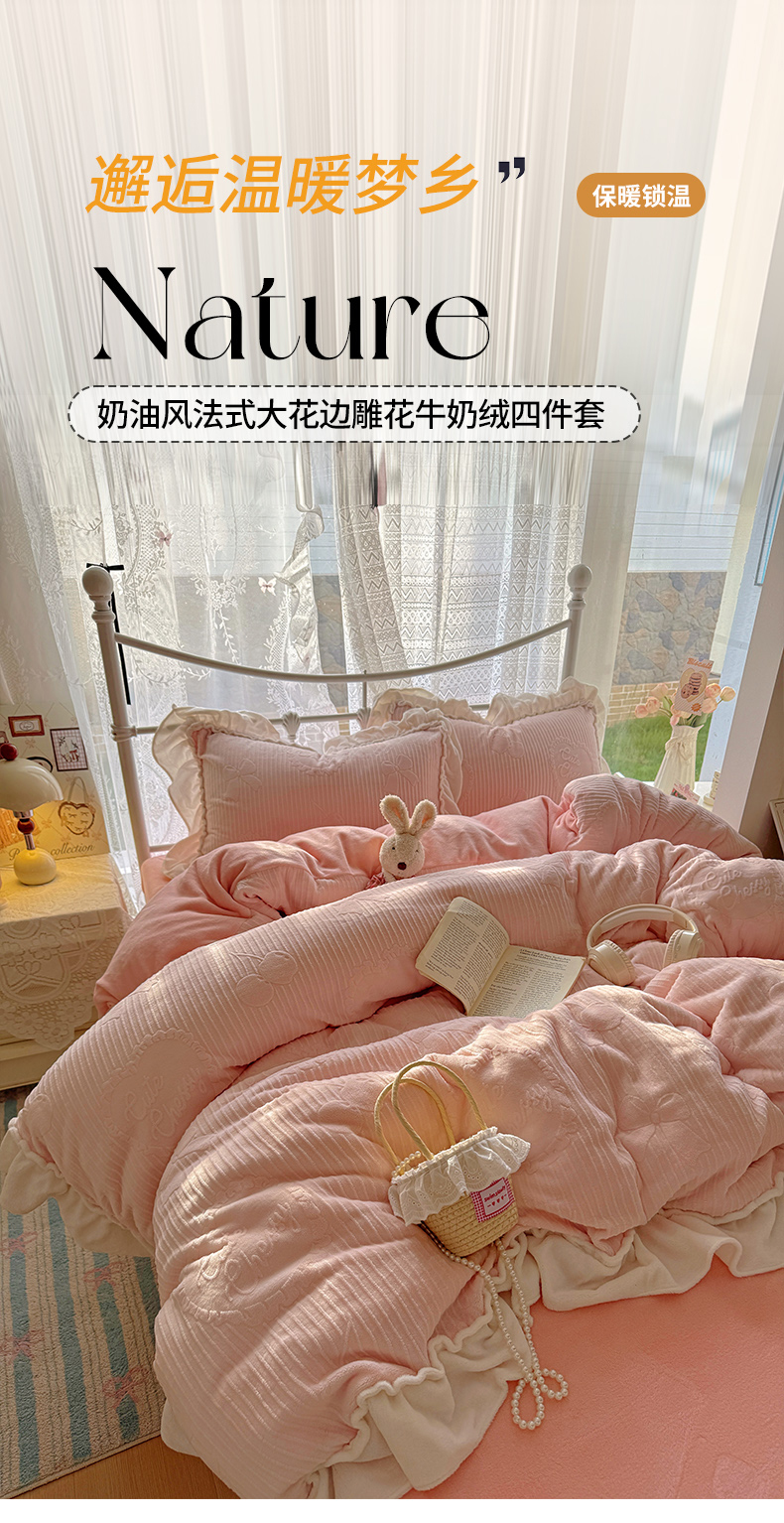 当前位置: 91家纺网 > 商品网购 > 床品套件 > 四件套 > 牛奶绒四件套 > 捌月 2025新款奶油风法式大花边雕花牛奶绒四件套 小确幸-悠悠粉