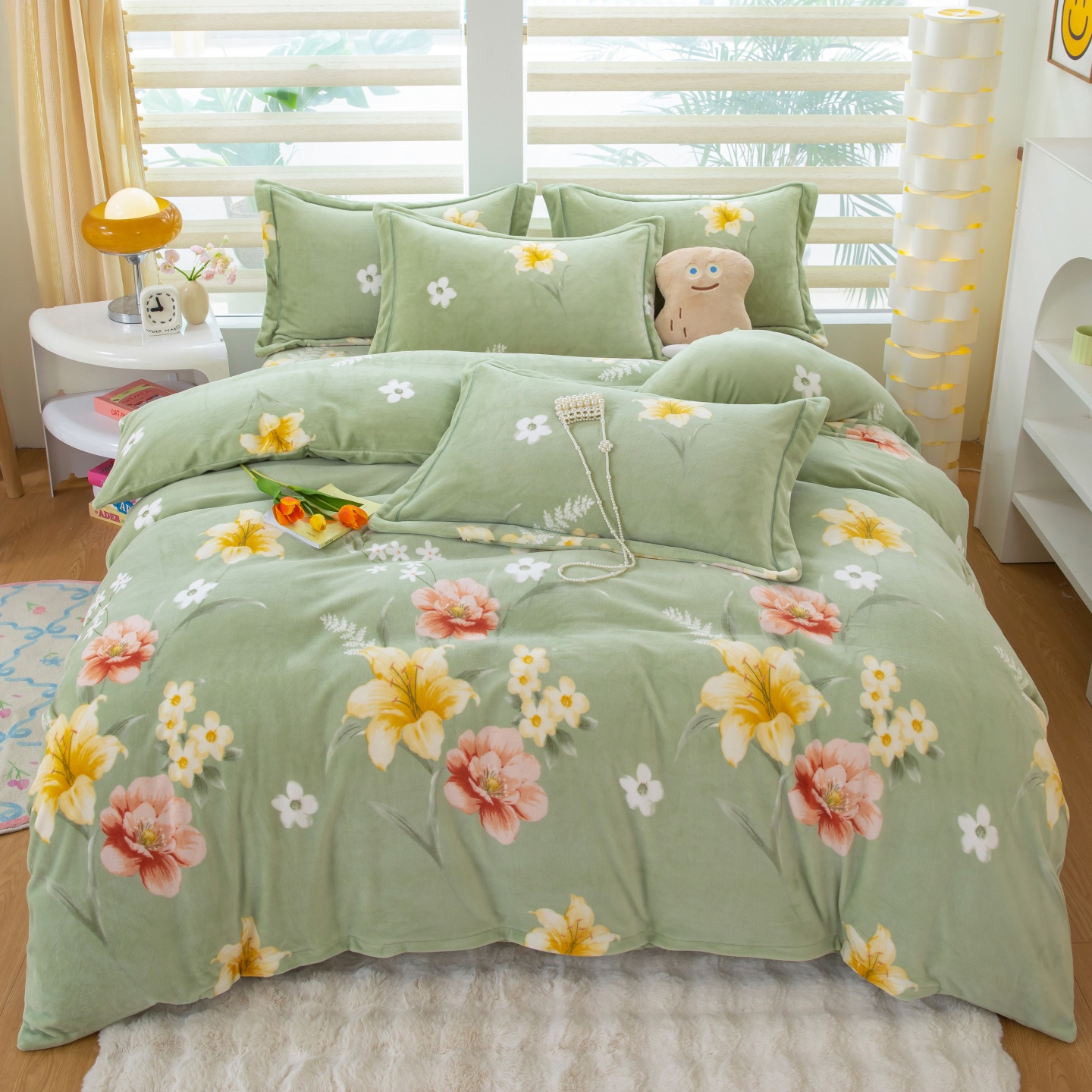(总)卡迪亚家纺 2025新款牛奶绒床盖款荷叶边四件套-花颜,花颜-春湖绿,花颜-豆沙红,花颜-高级灰,花颜-活力蓝,花颜-魅力紫,花颜-抹茶绿,花颜-胭脂粉