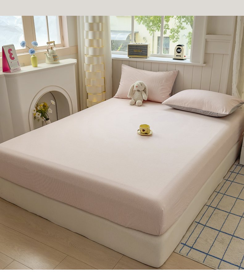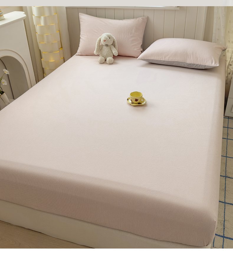 • 91家纺网 家纺一手货源 找家纺 宜家坊 2025新款A类色织全棉水洗棉床单单件纯棉格子纯色学生宿舍定制定做 密条-浅粉
