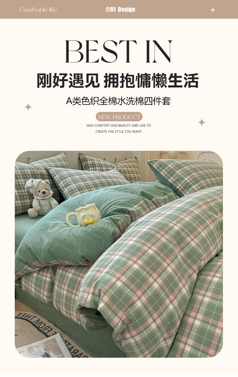 (总)宜家坊 2025新款A类全棉色织水洗棉四件套纯棉格子纯色被套学生宿舍三件套定制定做,沐风-米咖,沐风-粉红,沐风-焦糖,沐风-兰咖,春野-咖灰,纯棉素-红,纯棉素-咖,纯色-草绿,纯色-果绿,纯色-湖蓝,纯色-藕粉,纯色-浅粉,纯色-浅灰,纯色-浅蓝,纯色-浅紫,纯色-土密,纯色-烟灰,洛伊-灰咖大格,米娜-绿灰,密格-草绿,密格-浅粉,密格-浅蓝,密格-烟灰,密条-粉灰,密条-米灰,密条-浅灰,密条-浅蓝,诺卡-浅灰,映像格-橙灰,映像格-蓝,映像格-绿