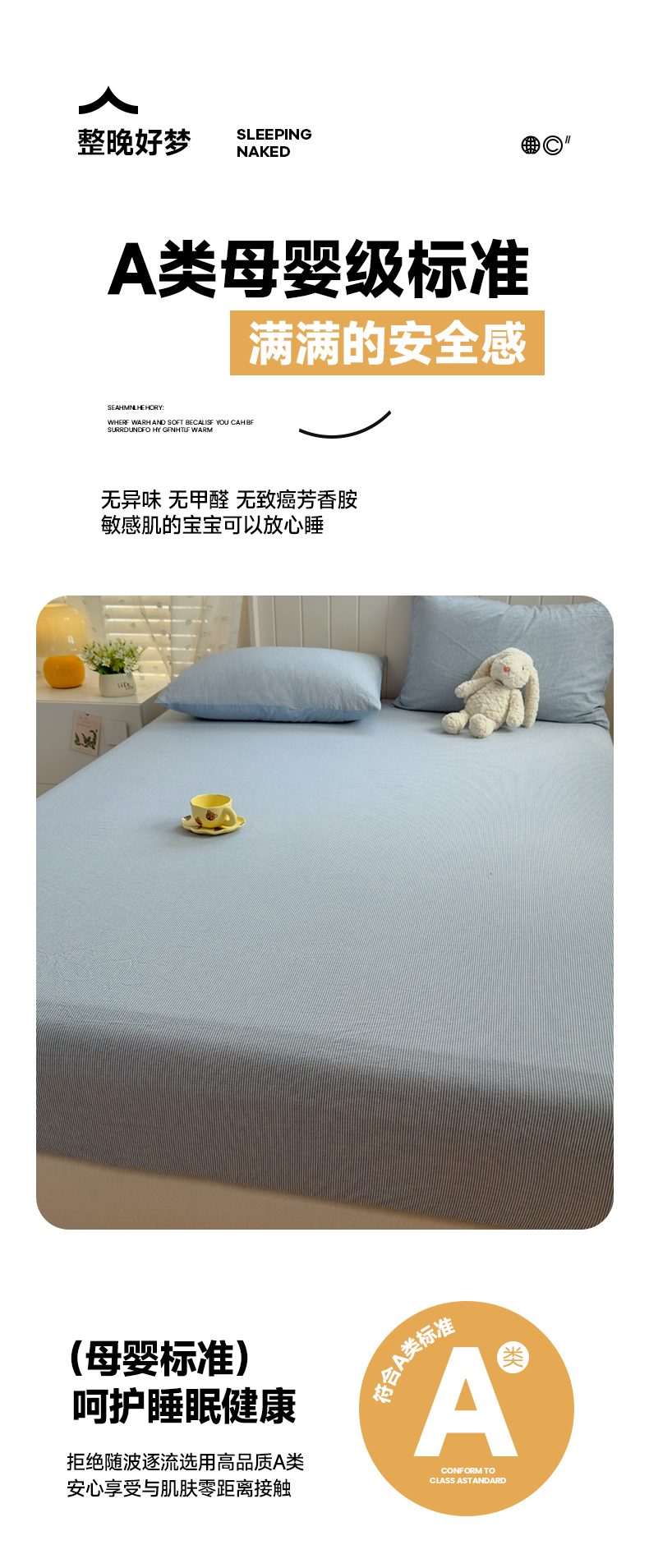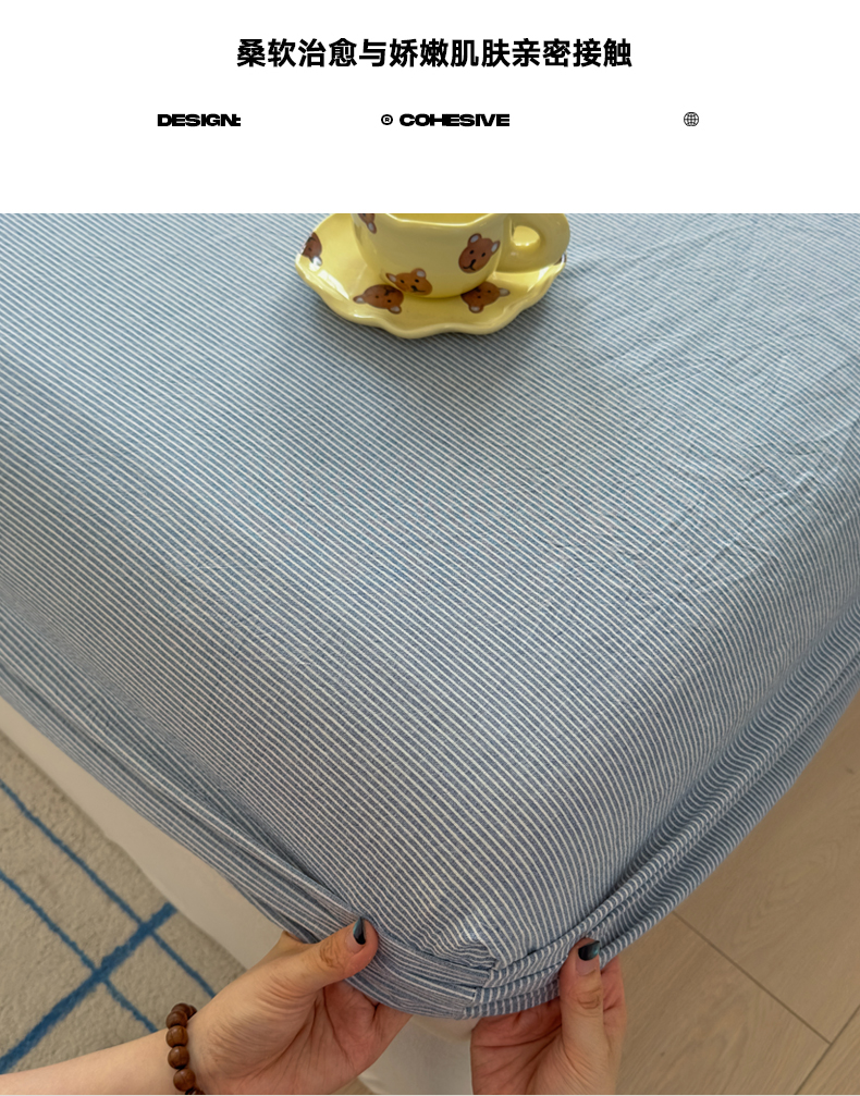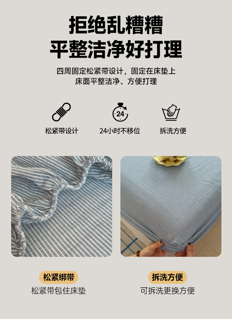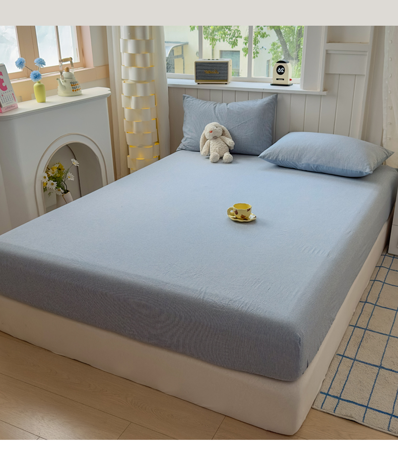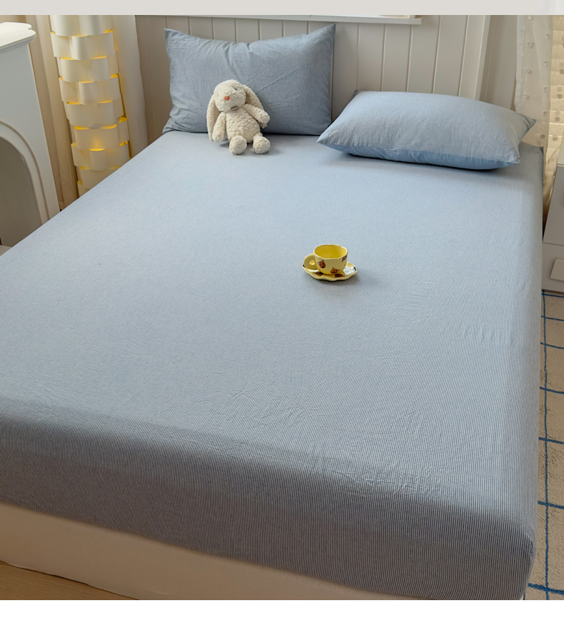 宜家坊 2025新款A类色织全棉水洗棉床笠单件纯棉格子纯色学生宿舍定制定做 密条-浅蓝