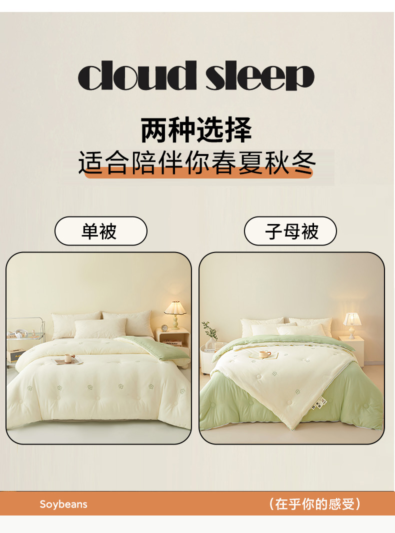 (总)维洋家纺 2025新款A类提花良质天然大豆子母被子被芯,良质白,良质灰,良质绿,良质玉