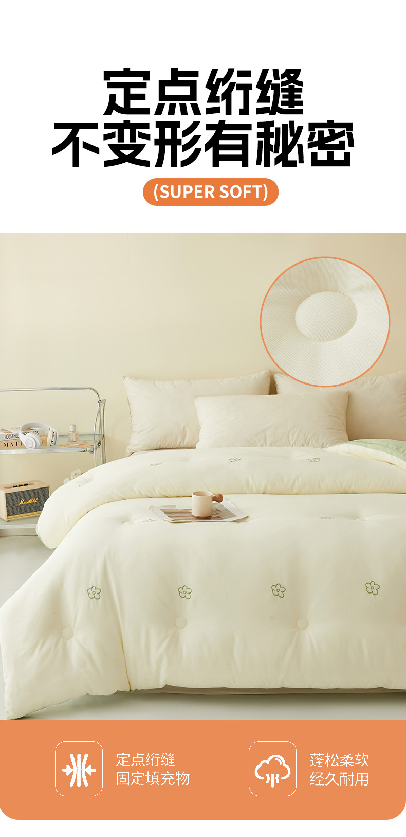 (总)维洋家纺 2025新款柔暖刺绣双层纱大豆子母被被子被芯,奶油粉花朵,奶油绿花朵,金棕蝴蝶结,奶咖蝴蝶,奶油蝴蝶结