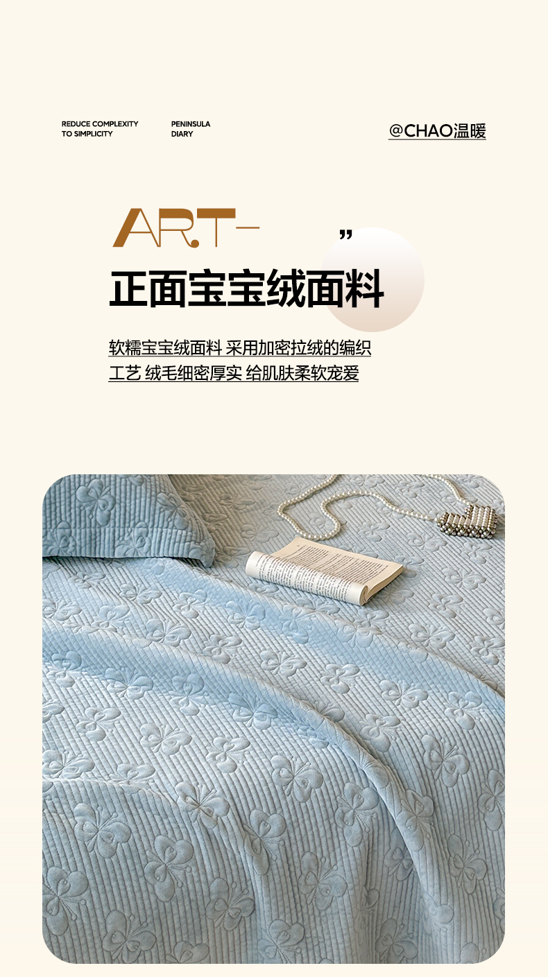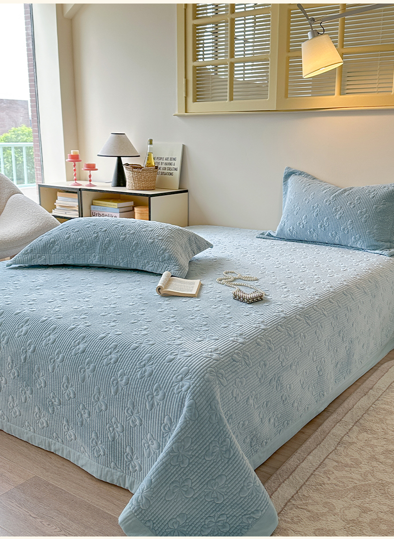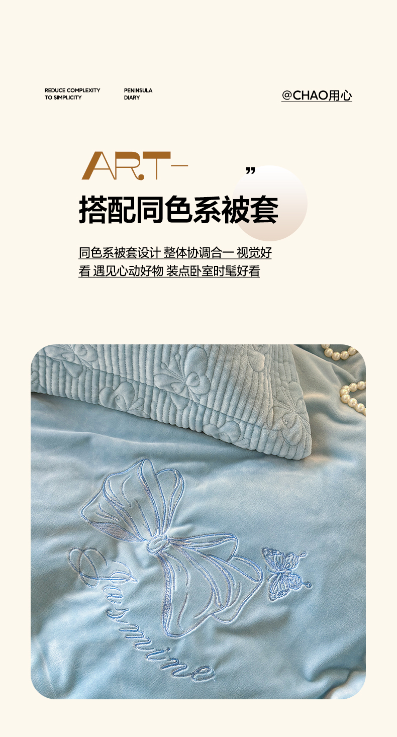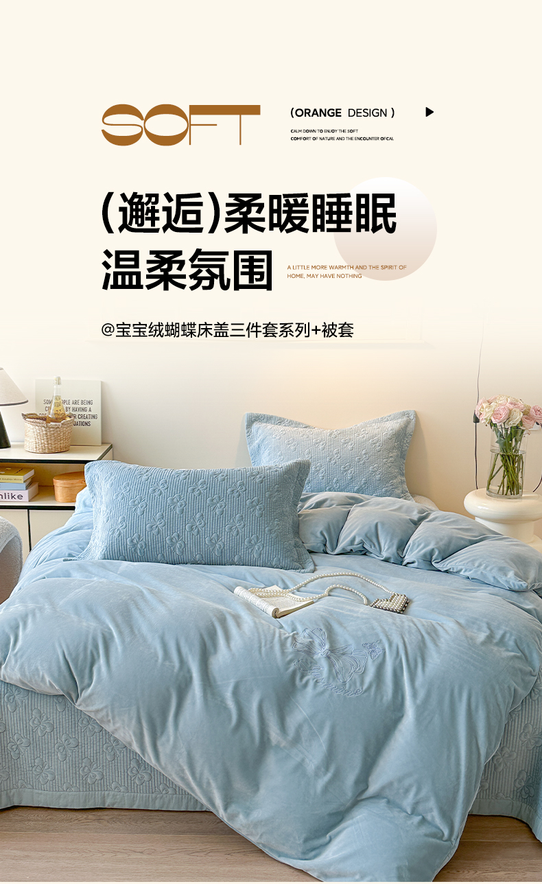 琳可家居 2025新款蝴蝶系列棉加绒床盖 绒蝴蝶-蓝沁