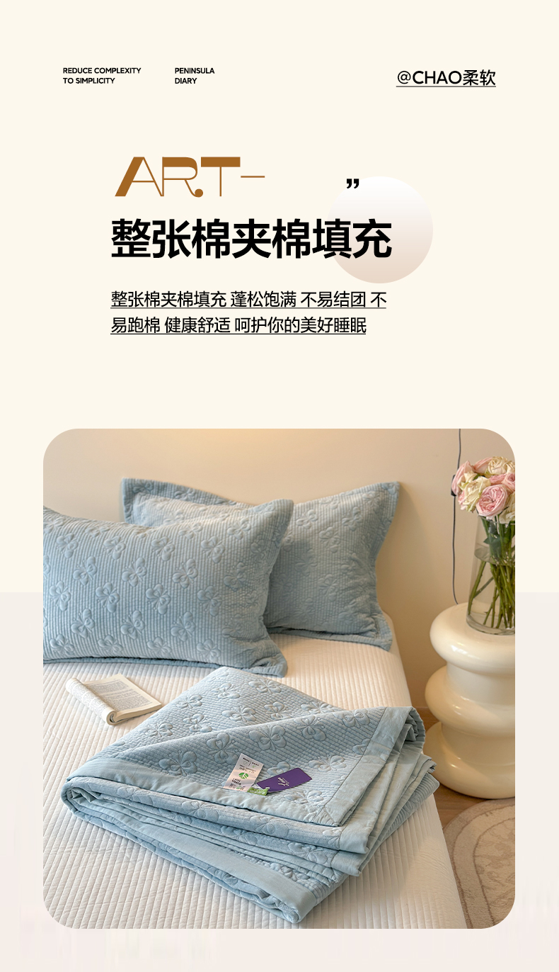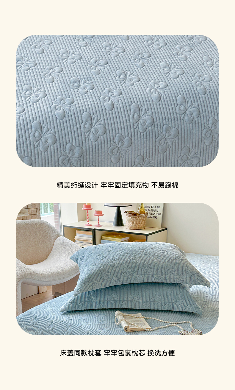 商品名称:琳可家居 2025新款蝴蝶系列棉加绒床盖 绒蝴蝶-蓝沁
