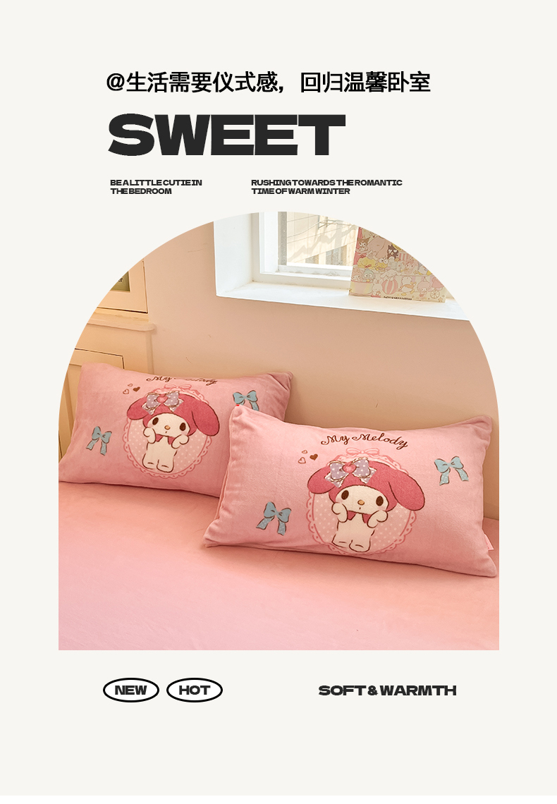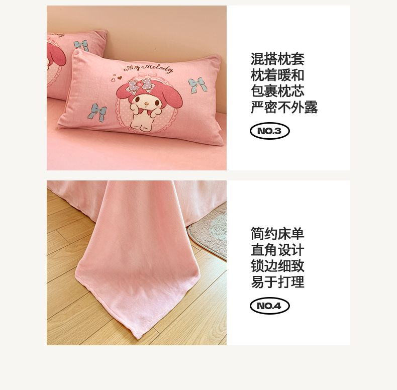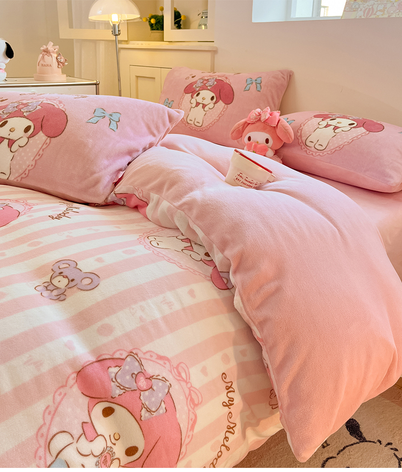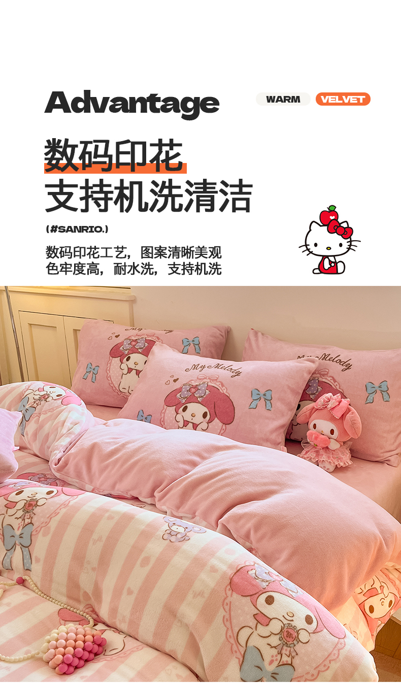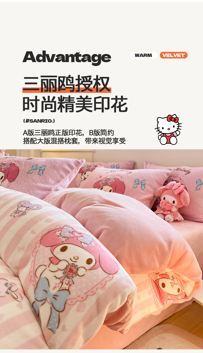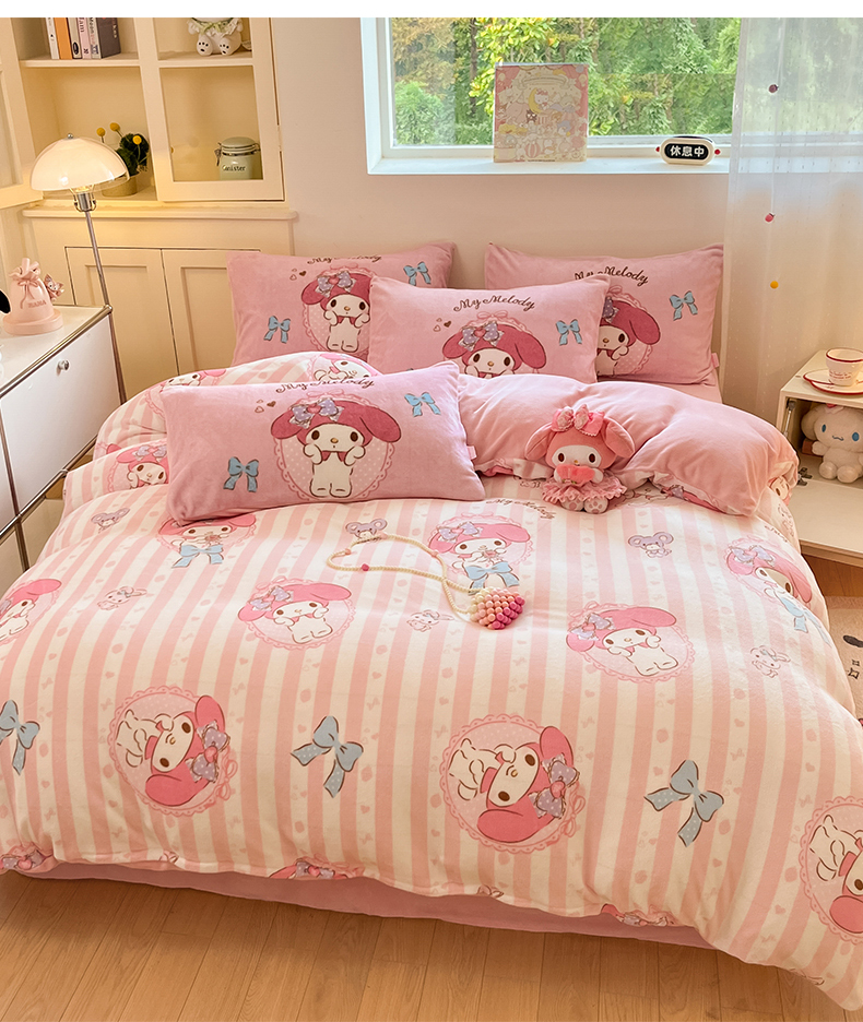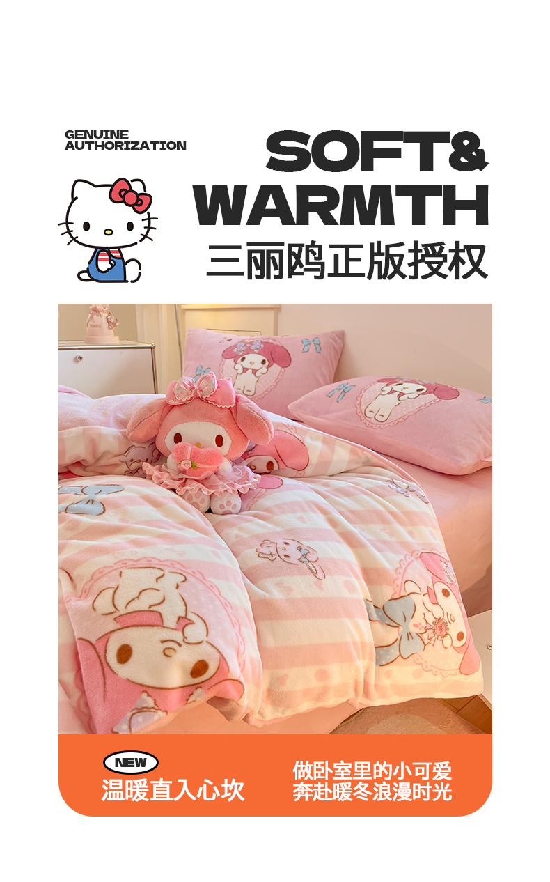 当前位置: 91家纺网 > 商品网购 > 床品套件 > 四件套 > 牛奶绒四件套 > 桃子家居 2025新品正版三丽鸥授权Kitty数码大版枕套混搭卡通加厚高克重牛奶绒系列四件套单品 绒三丽鸥-混搭蝴蝶结美乐蒂