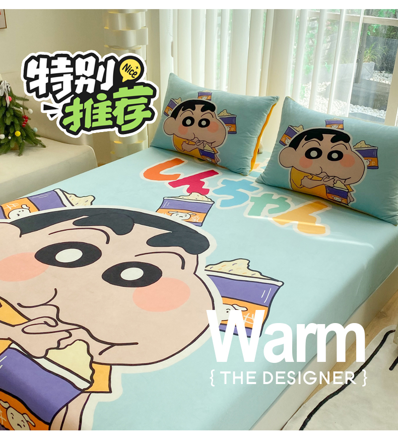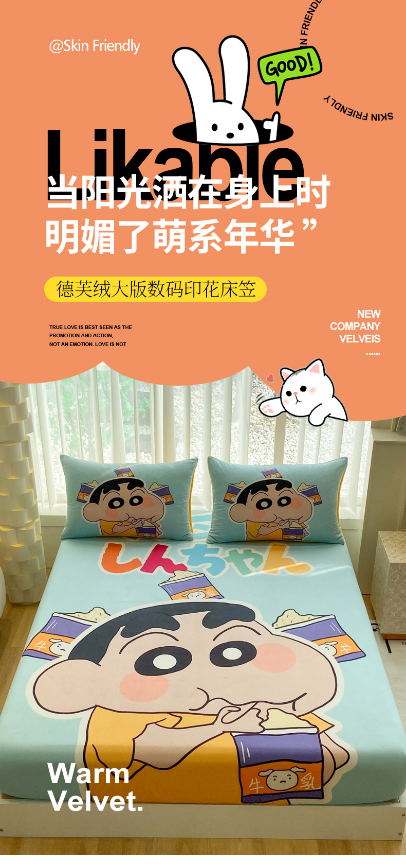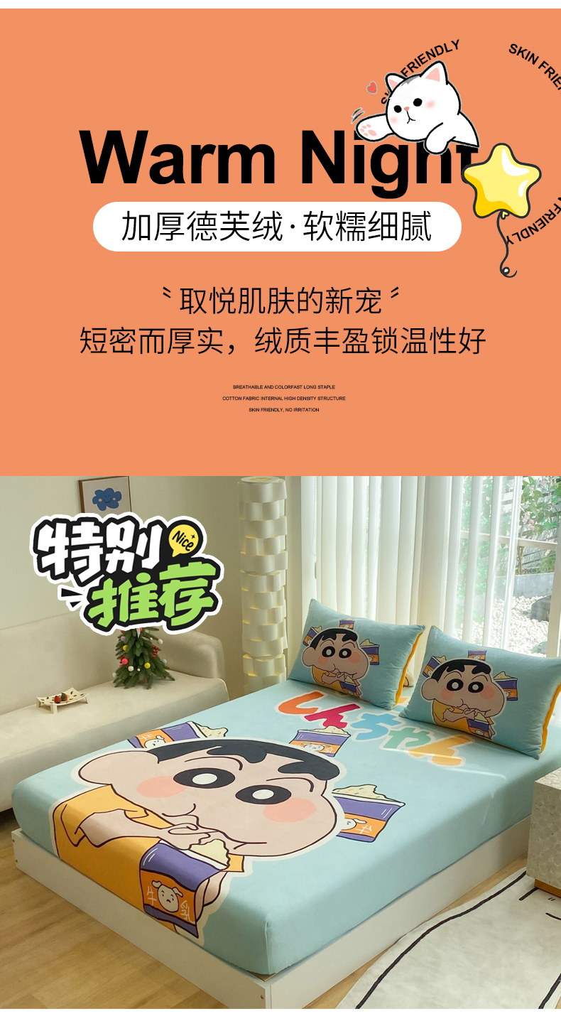 • 91家纺网 家纺一手货源 找家纺 一电 2025新款跨境电商床笠冬天德芙绒床笠单件加绒加厚绒床罩儿童学生宿舍床垫套床笠罩 奶茶小新