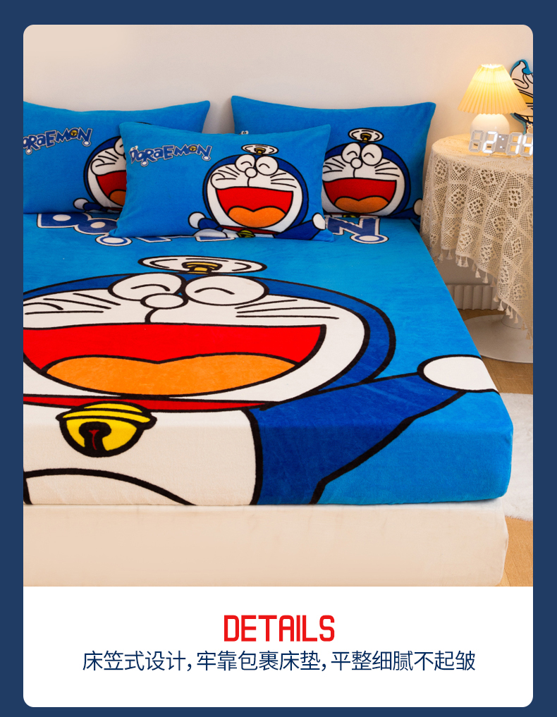 一电 外贸2025新款卡通珊瑚绒床笠单件床罩冬季加厚牛奶绒床垫保护罩全包床单套 叮当快跑