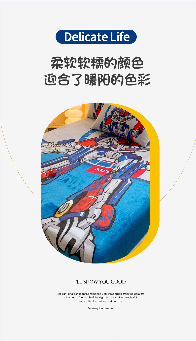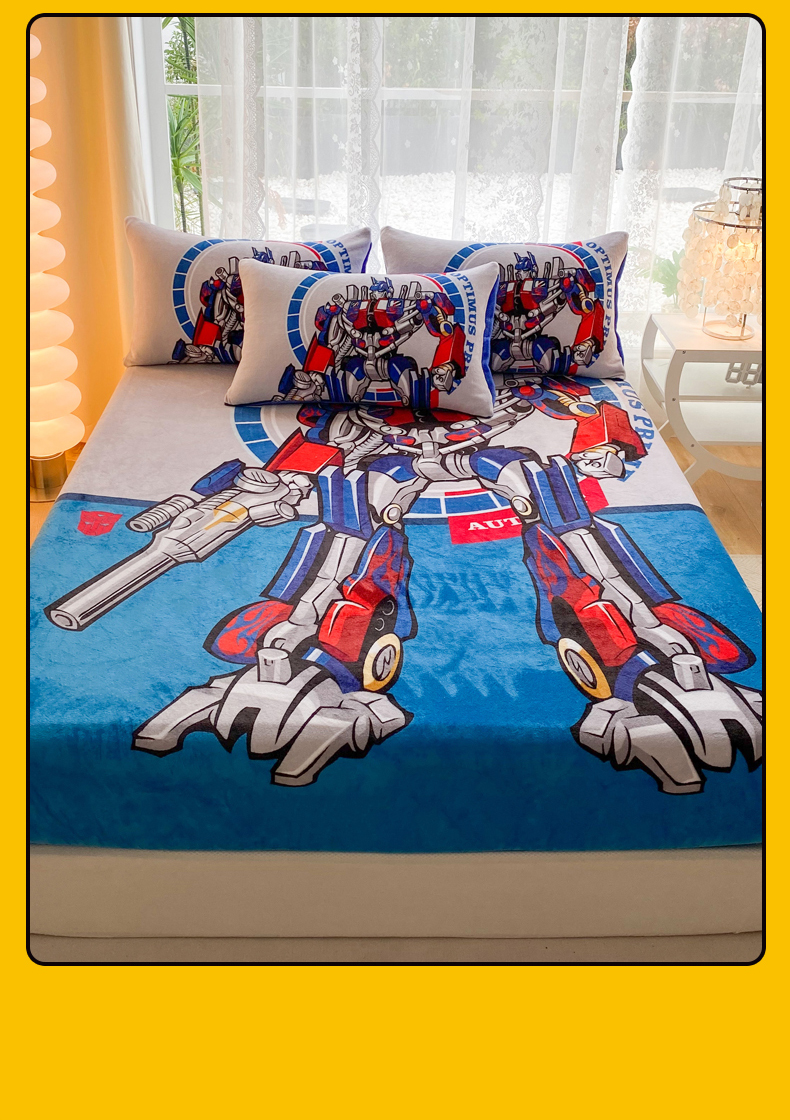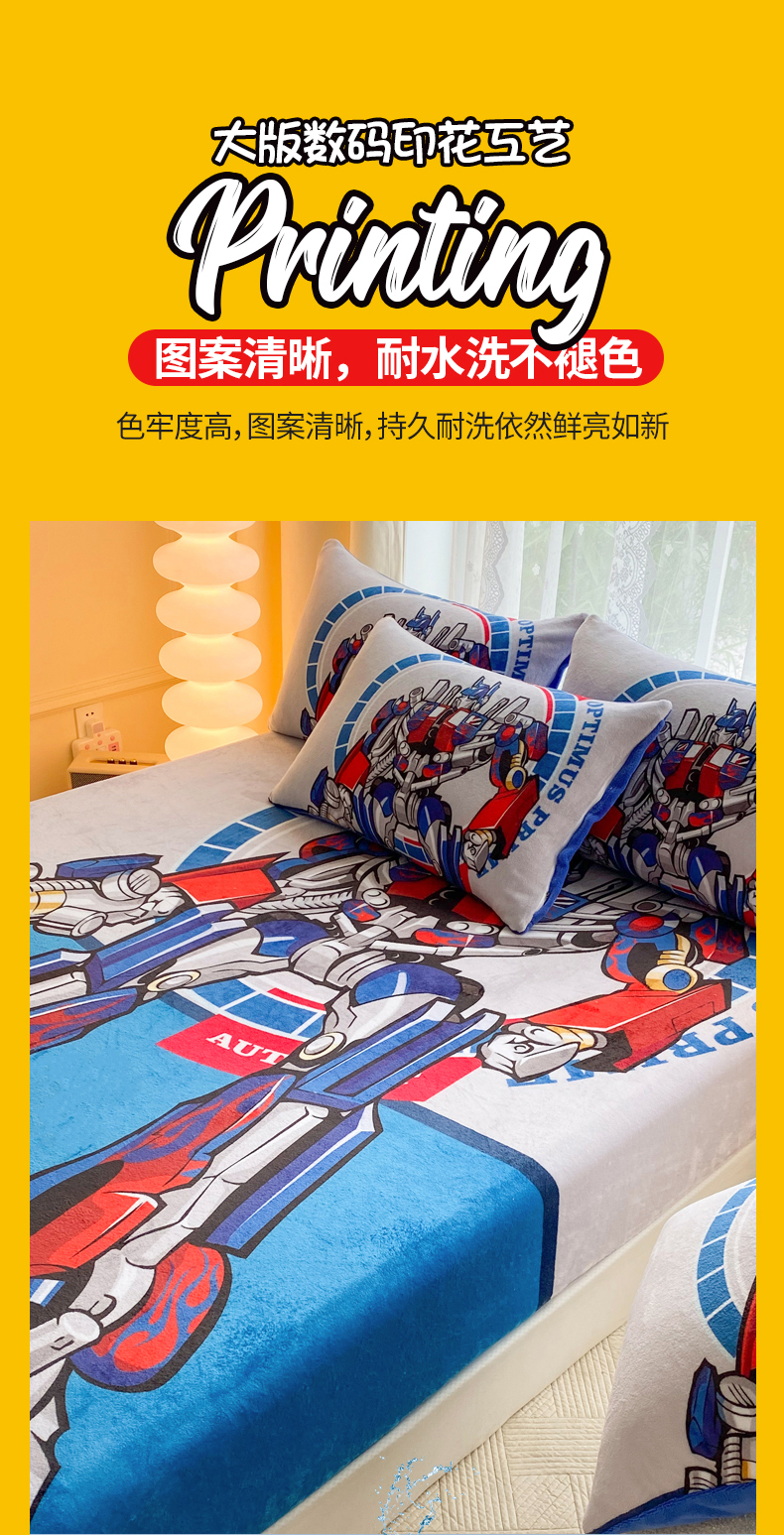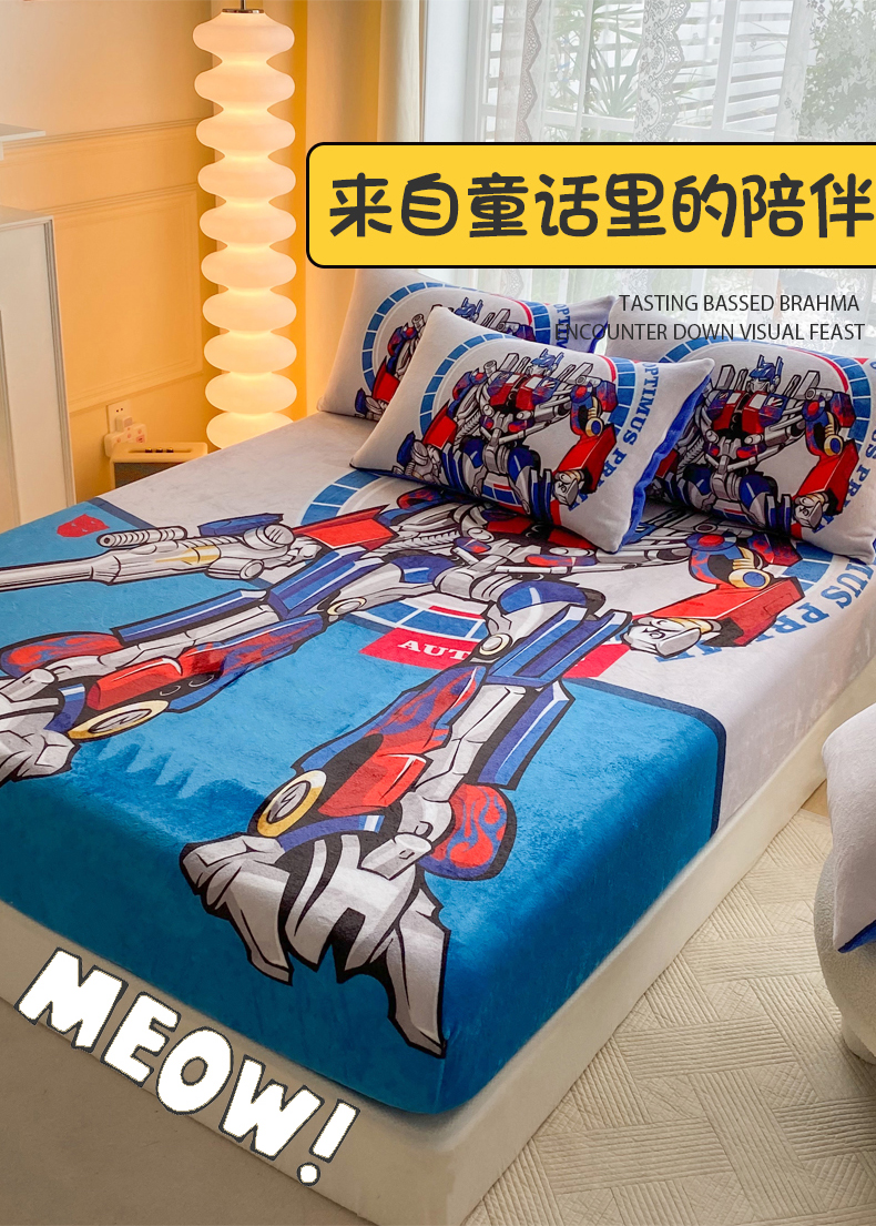 一电 外贸2025新款卡通珊瑚绒床笠单件床罩冬季加厚牛奶绒床垫保护罩全包床单套 圈圈机器人